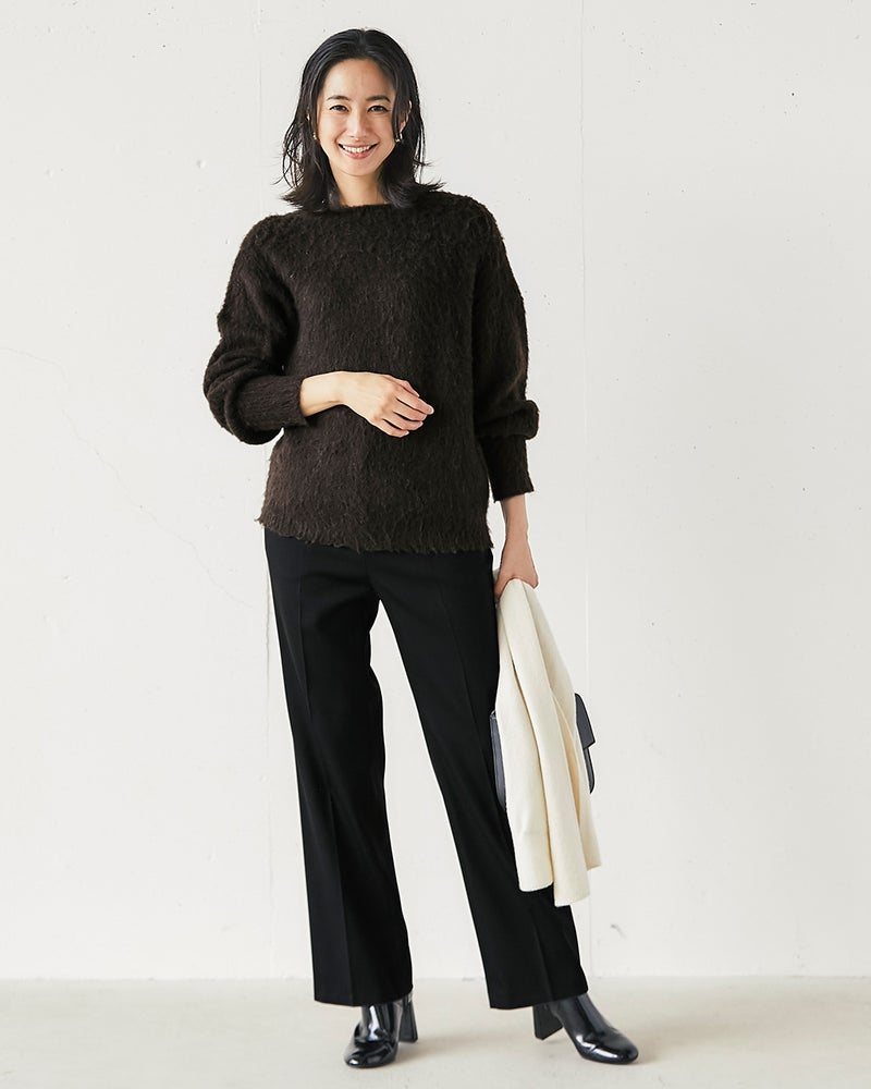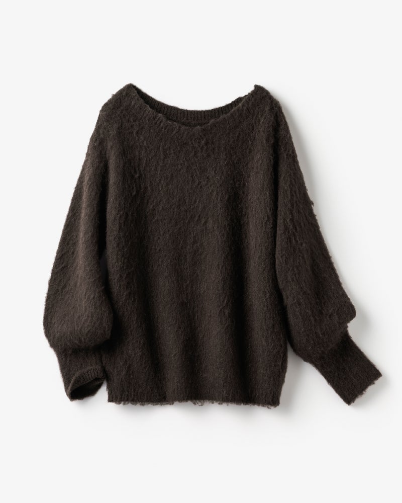 ※ニットに時折浮いて見える白い繊維は、モヘアの自然な色によるものです。素材の風合いとしてお楽しみください。