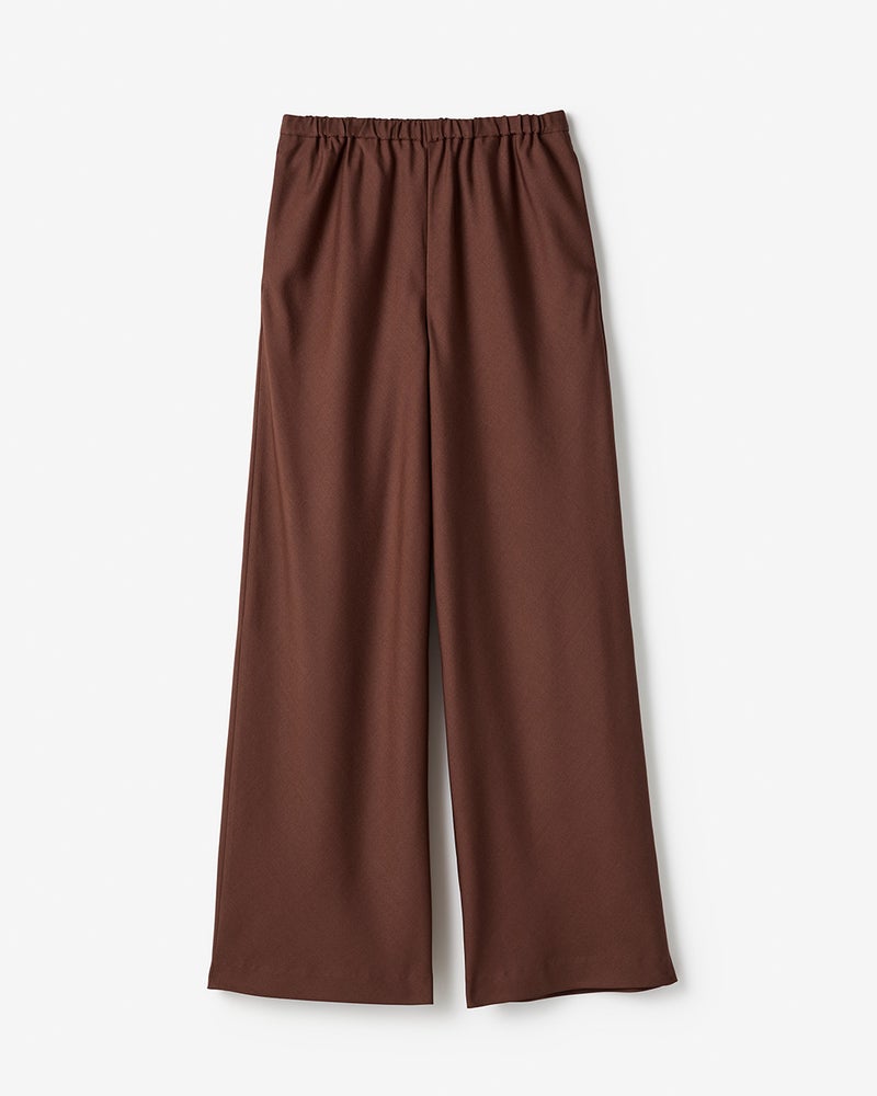 - いい色です。秋の入口に分厚くはないけれど秋らしく。落ち感があってウエストも楽。フラットシューズを履くので丈もジャストです。たたみジワのある状態で届きましたが一度スチームアイロンをかけたらあとはお手入れ要らず。