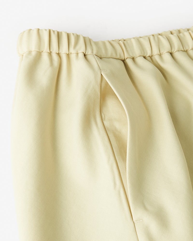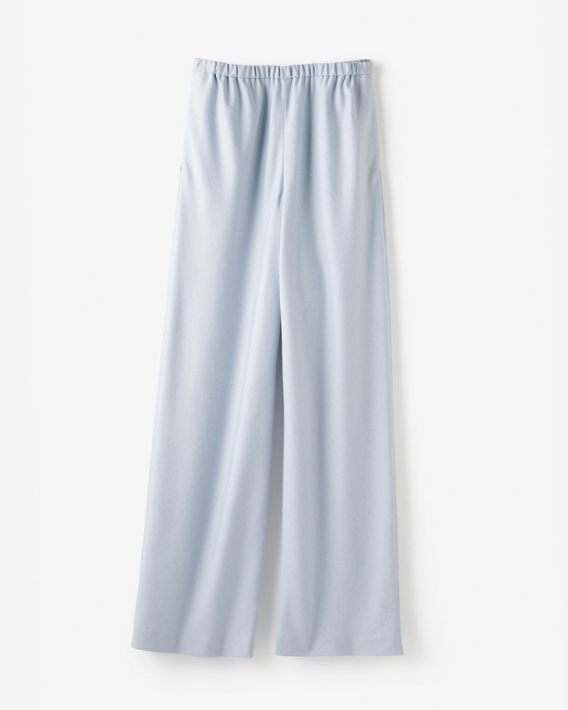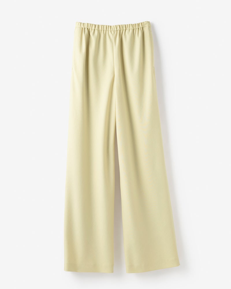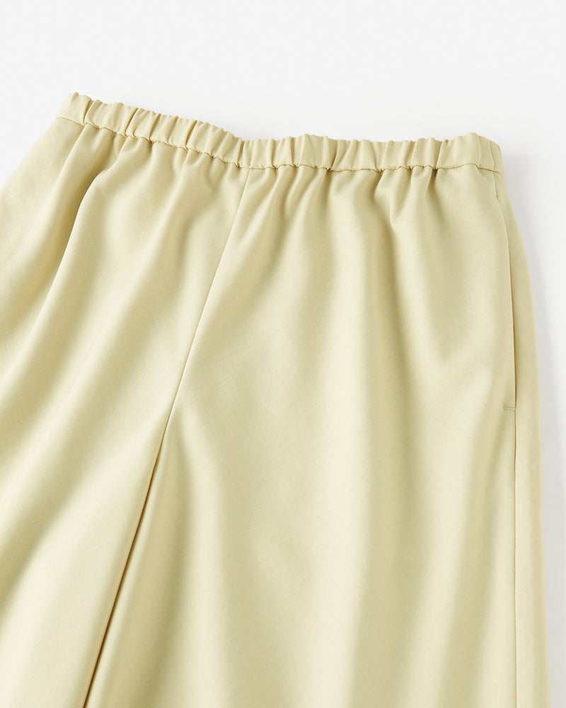 - とてもサラサラの生地です。ウエストがゴムなので楽ちんで更に生地のバイヤスで足長効果を感じます。色違いで2本持っています。艶感があるので綺麗目スタイルの時に活躍しています。