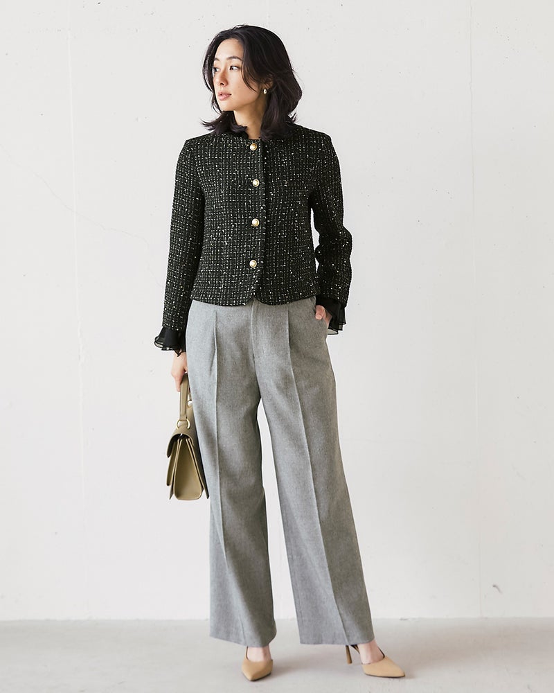 ツイーディジャカード・異素材コンビジャケット(ブラック)