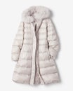 - ふわふわエコファーが顔まわりを華やげ、暖かく包むフードには、ふわふわ柔らかな風合いのエコファーをあしらうことで、顔まわりを華やげながらぬくもりをアップ。前立てとフード縁のグログランテープもさりげないポイント。シルエットを美しく保つのにも一役買ってくれています。