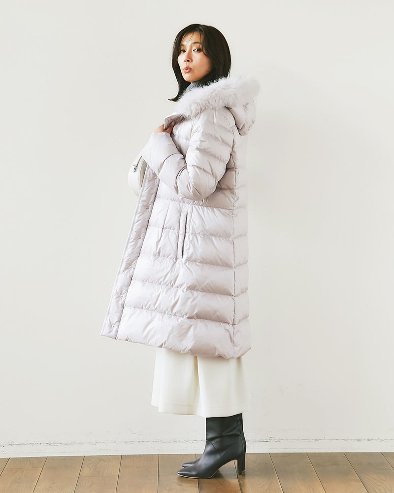 • 艶Airダウン・エコファーフードロングコート 詳細画像 ストーン 2