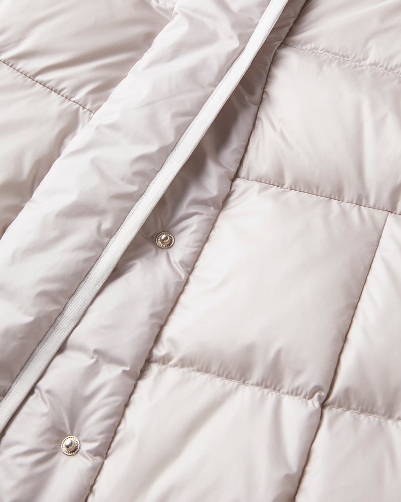 着映えを叶えるのは、華やかな艶をまとった20デニールのタフタ生地。ハイブランドのダウンにも使われる上質な生地は、ほんのり透明感があって、見た目もすっきり軽やかな印象です。