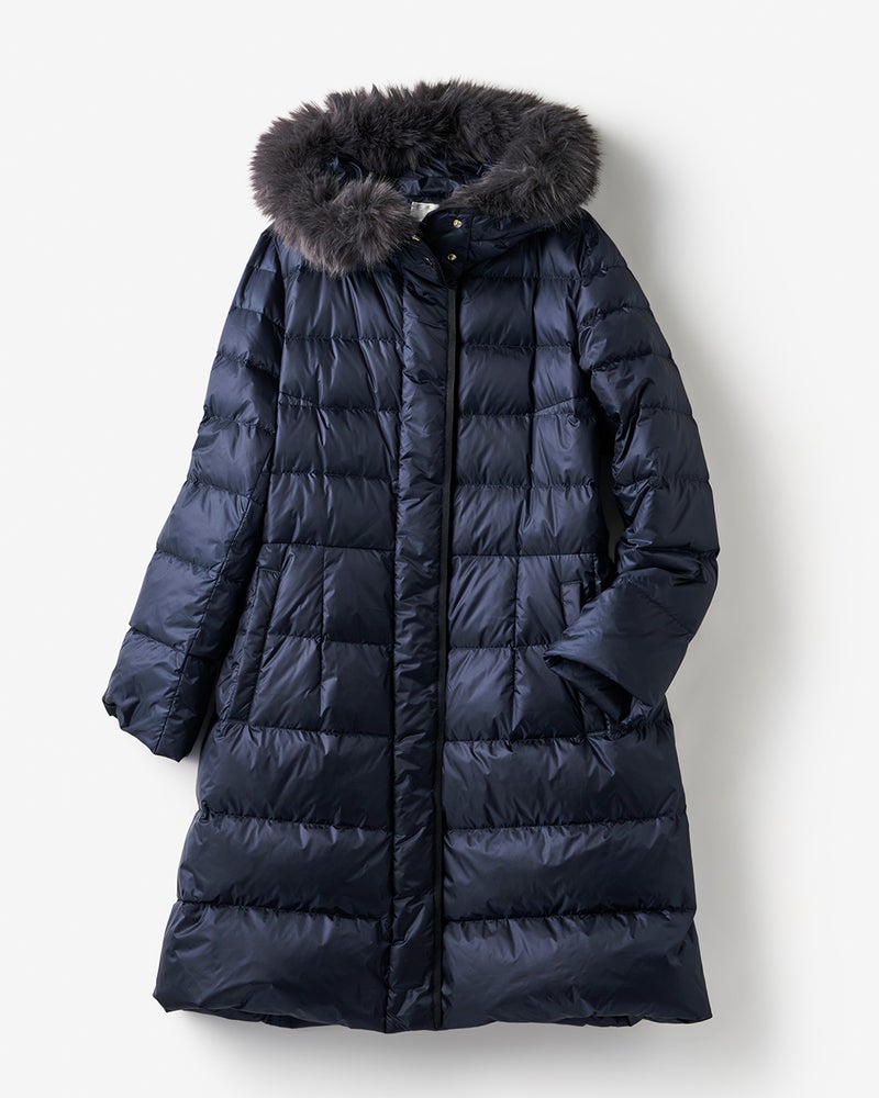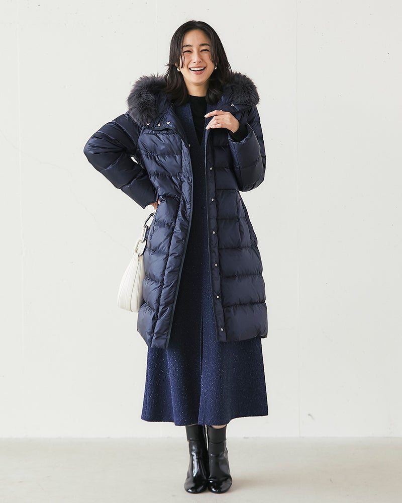 • 艶Airダウン・エコファーフードロングコート 詳細画像 ミッドナイトブルー 1
