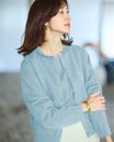 華やぎのあるデザインで、顔周りをビジューがさりげなく明るく見せてくれます。単品でも着回しができ楽しめそうです。ライトブルーに続きベージュも選びました。他の色も素敵だなと考え中です。