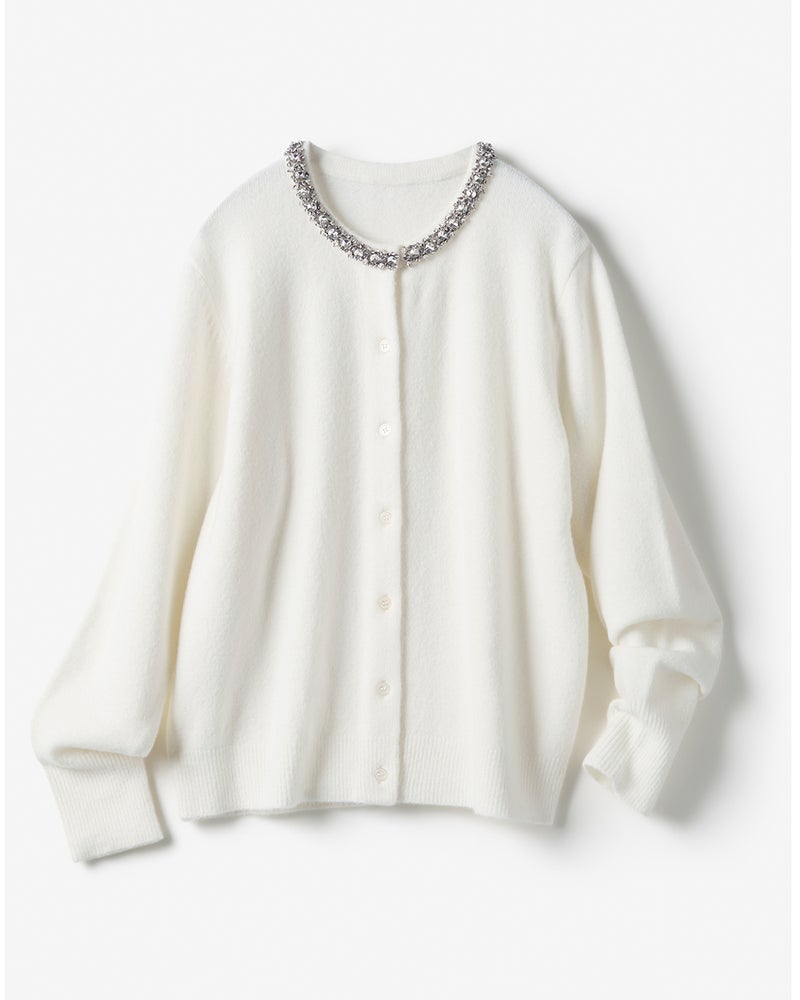 • ウール混・ネックビジューカーディガン 詳細画像 オフホワイト 1