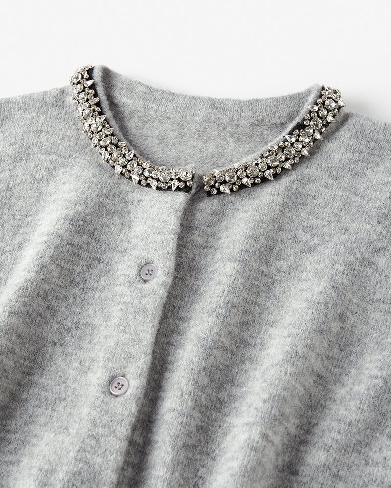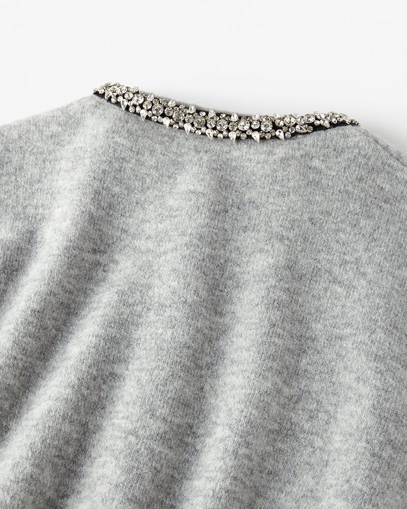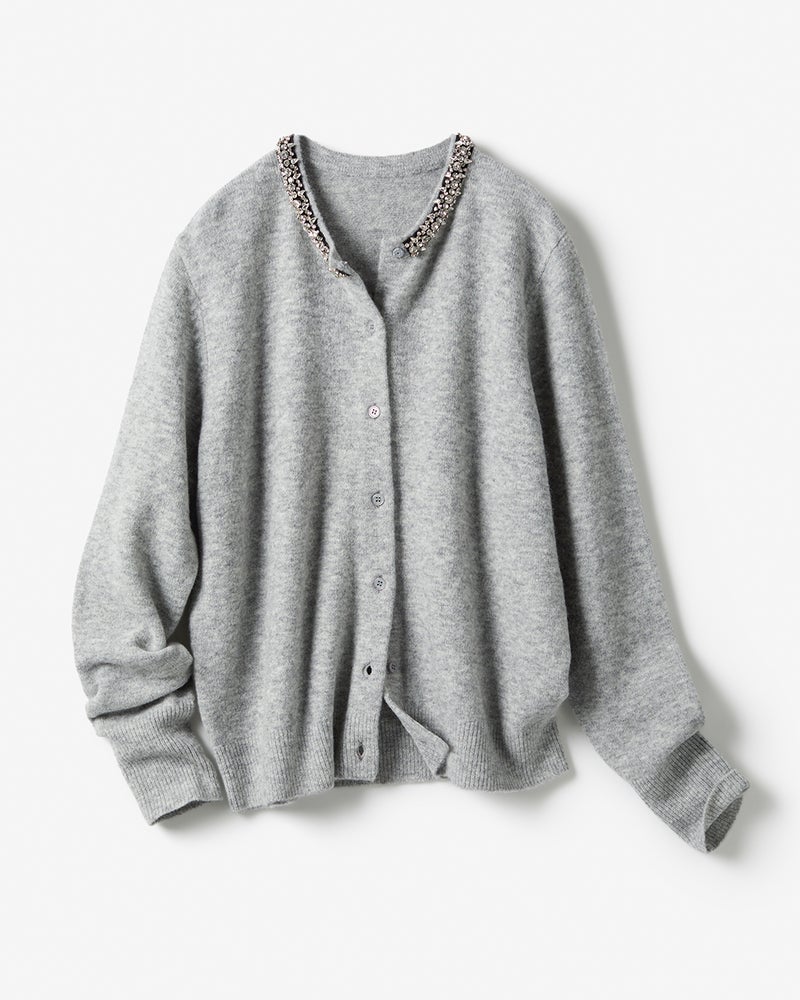 • ウール混・ネックビジューカーディガン 詳細画像 ライトグレー 1