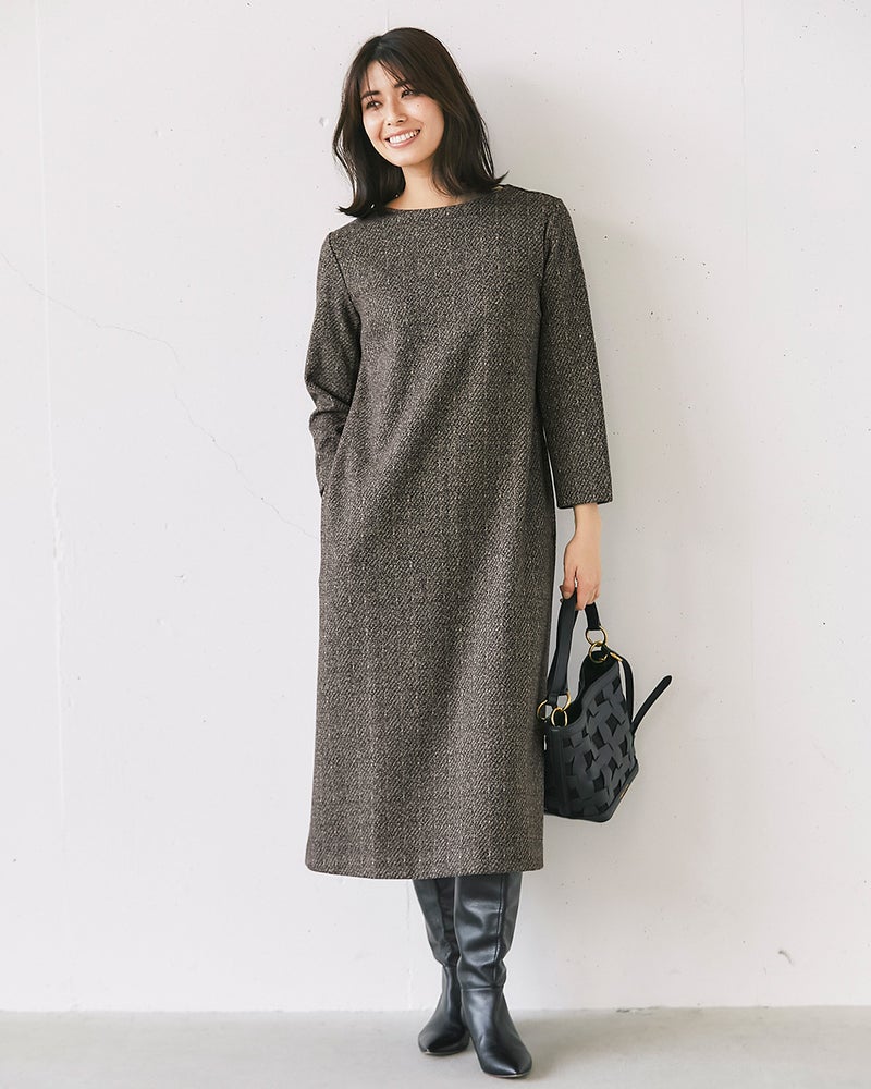 ウールタッチジャカード・Aラインワンピース