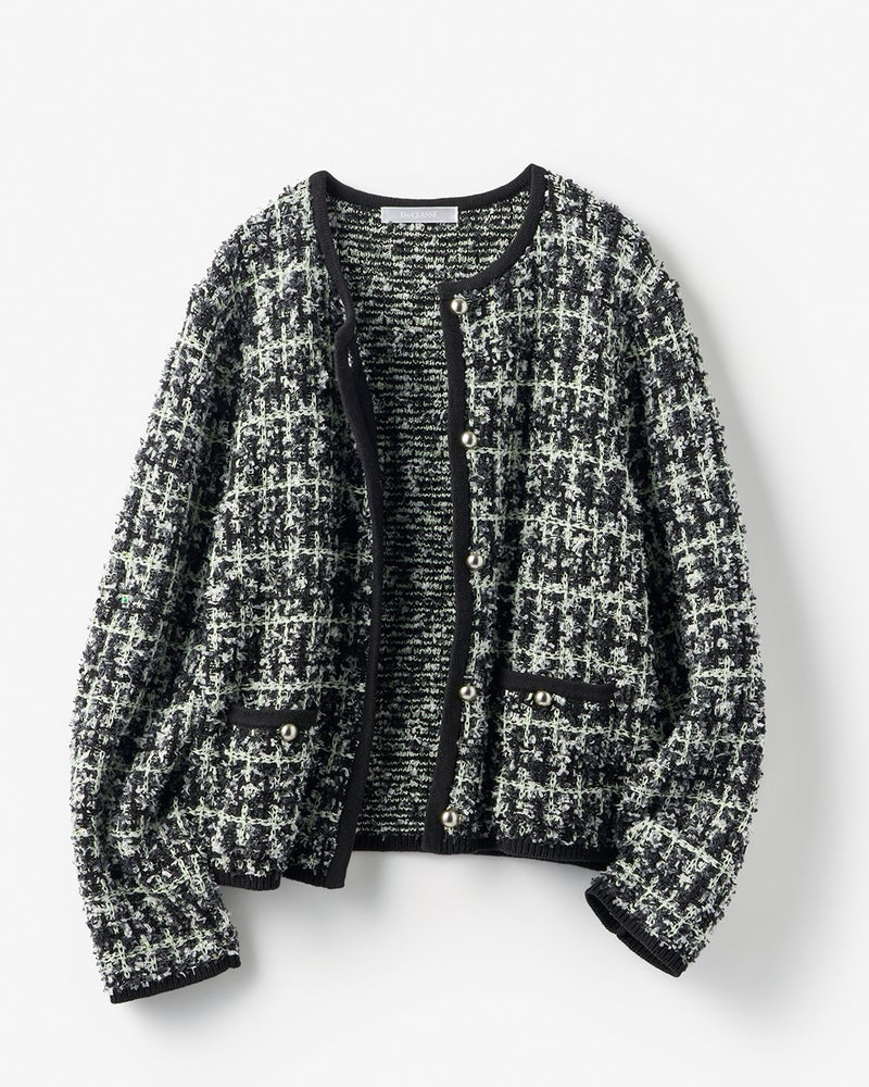 • ツイーディニット・トリムジャケット 詳細画像 ブラックパターン 9