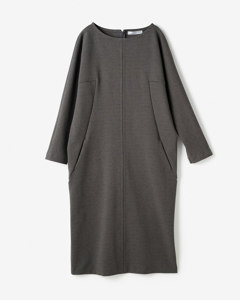 表裏の両面を編みたてたポンチ素材は、ふっくらとハリがあり体型を拾いにくく、柔らかなストレッチ性も魅力。立体的なカッティング技術により、ボディまわりのゆったり感をキープしながら、スマートに着映えするコクーンシルエットのワンピースに仕立てました。きちんと感があるのに、のびやかな着心地。会食の席などでも頼もしい味方になってくれる一着です。