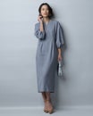 • トリニティツイル・キーネックワンピース 詳細画像 ブルーグレー 1
