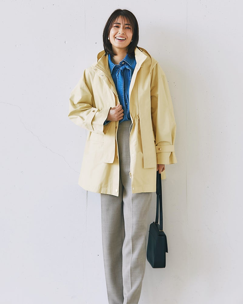 - ワンサイズの9号を選択。イエローと迷いつつもベージュを選択。どの季節の変わり目にも使えそう。フードは私的に要りません。