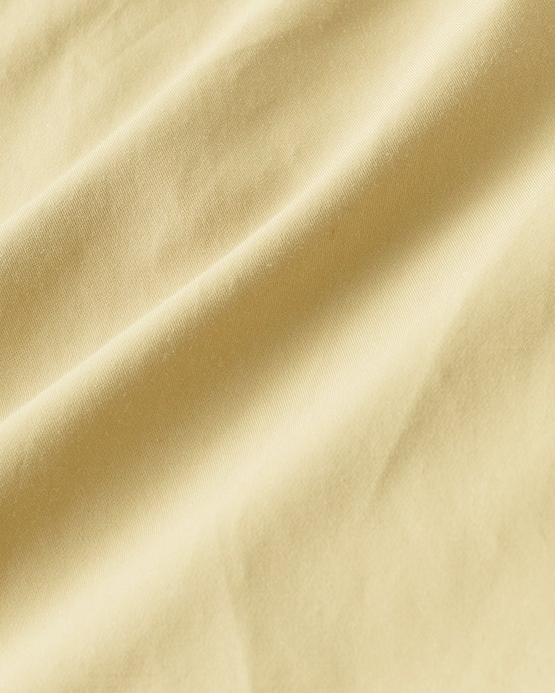 トーンを抑えた優しげなライトイエローは派手な色目ではないので秋冬でも使えますし、インナーやボトムスも合わせやすいと思います。