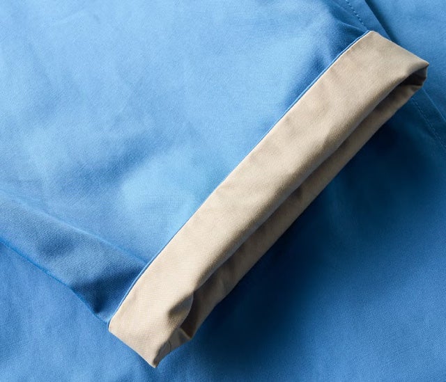 - 袖口をロールアップして、チラリと裏地を見せてもアクセントに袖口も裏を配色でデザイン。ゆったり幅の袖は、中にニットやボリュームスリーブのブラウスを合わせた時も、すっきり着こなせます。