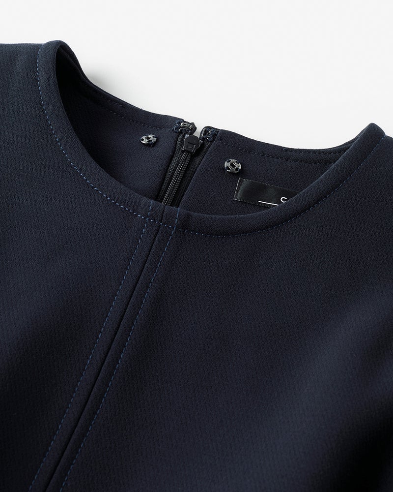 背中ファスナーの引き手に長めのグログランリボンをあしらって、さりげなくお洒落に。