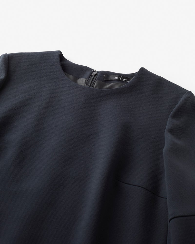 二重織素材のベルスリーブワンピース
