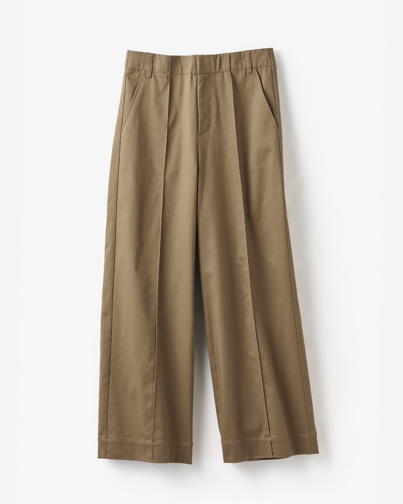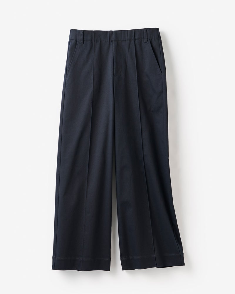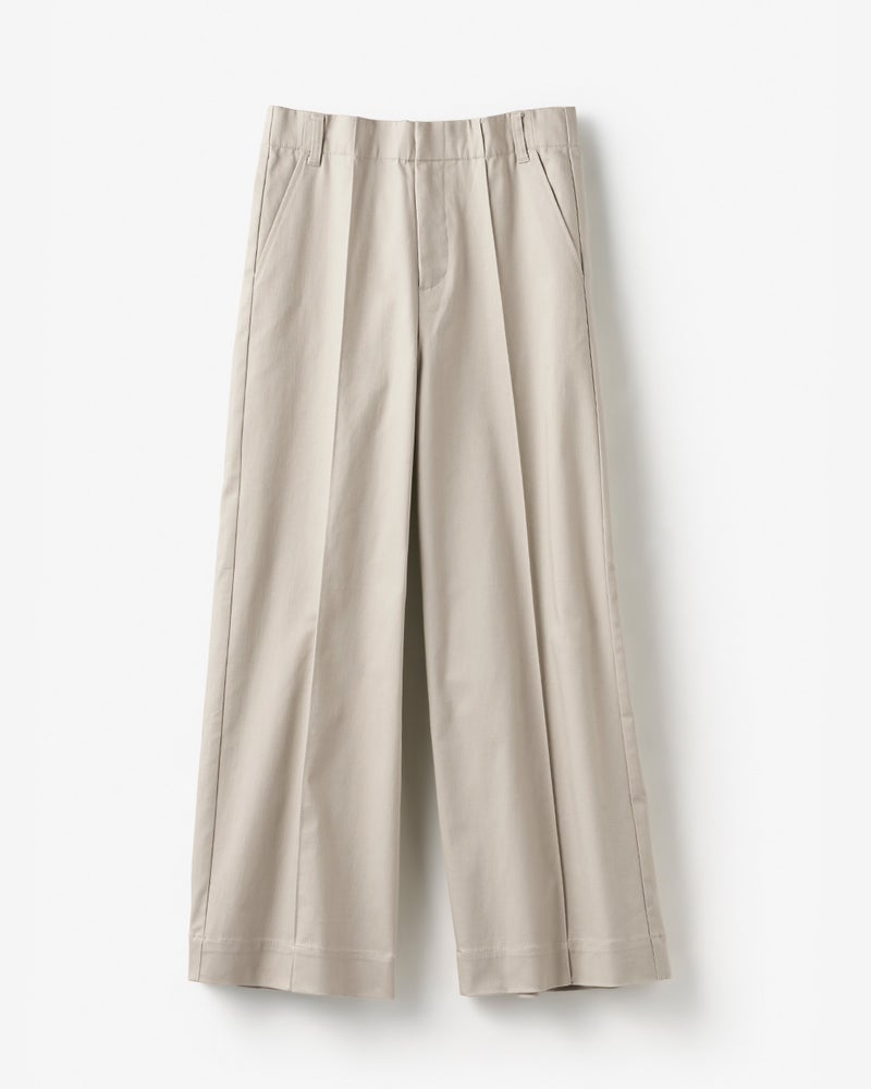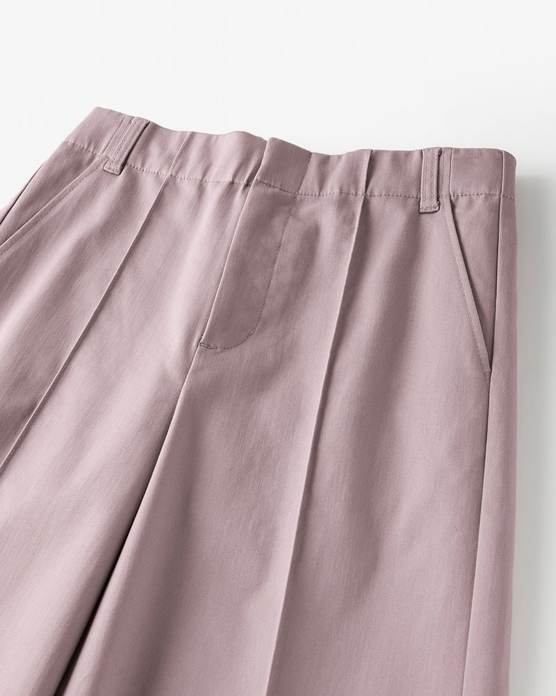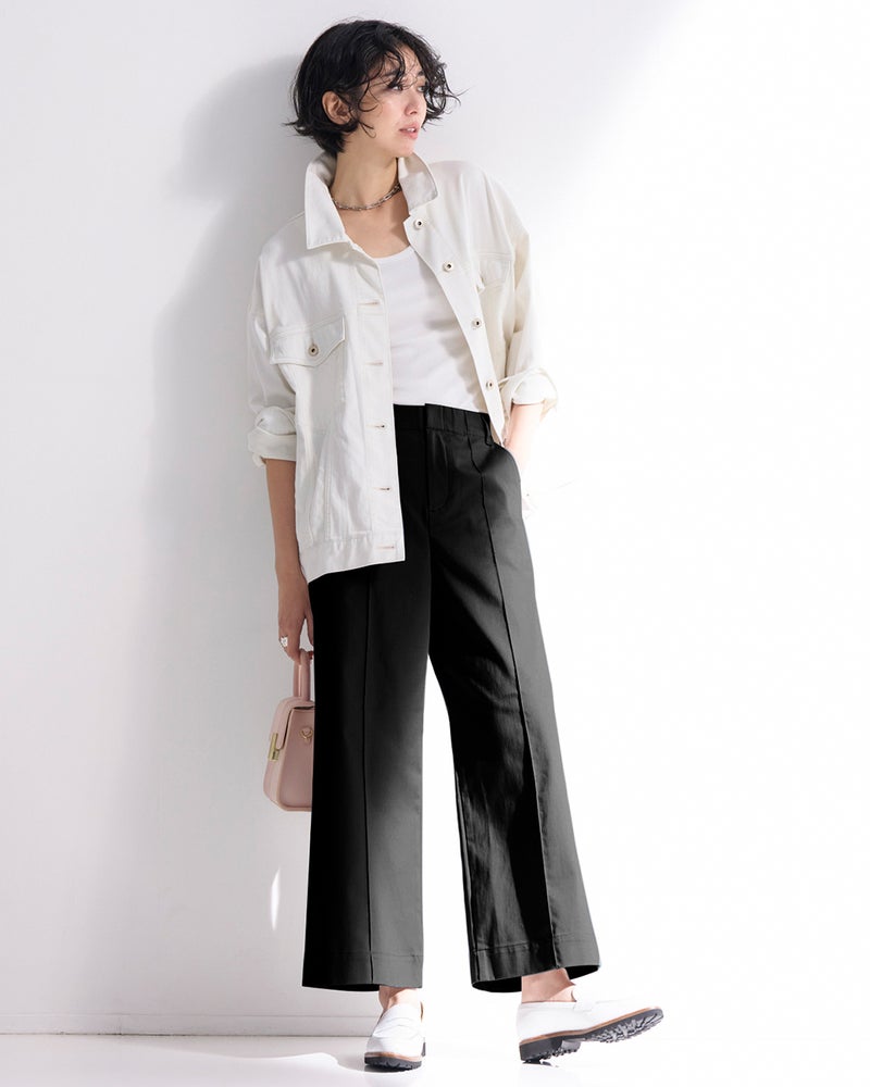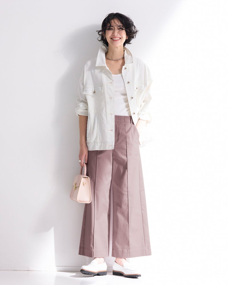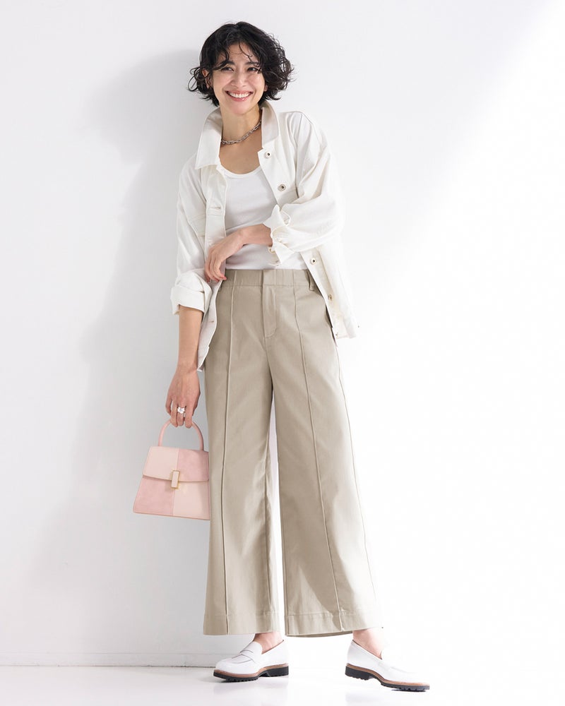 フロントのピンタックとサイド切り替えが縦ラインを強調し、すっきりバランスよく着こなせます。ワイドパンツが似合わないと思っている方にこそ、おすすめしたい1本です。