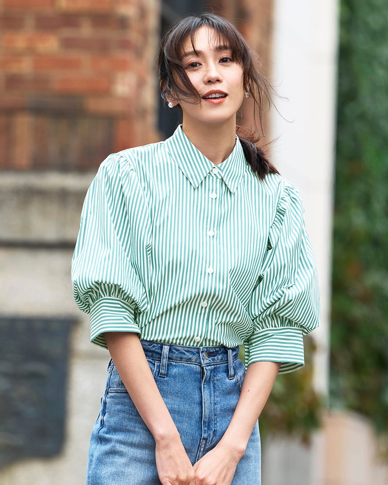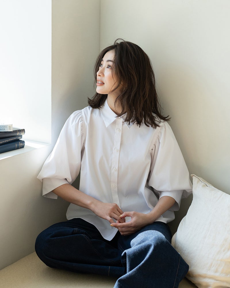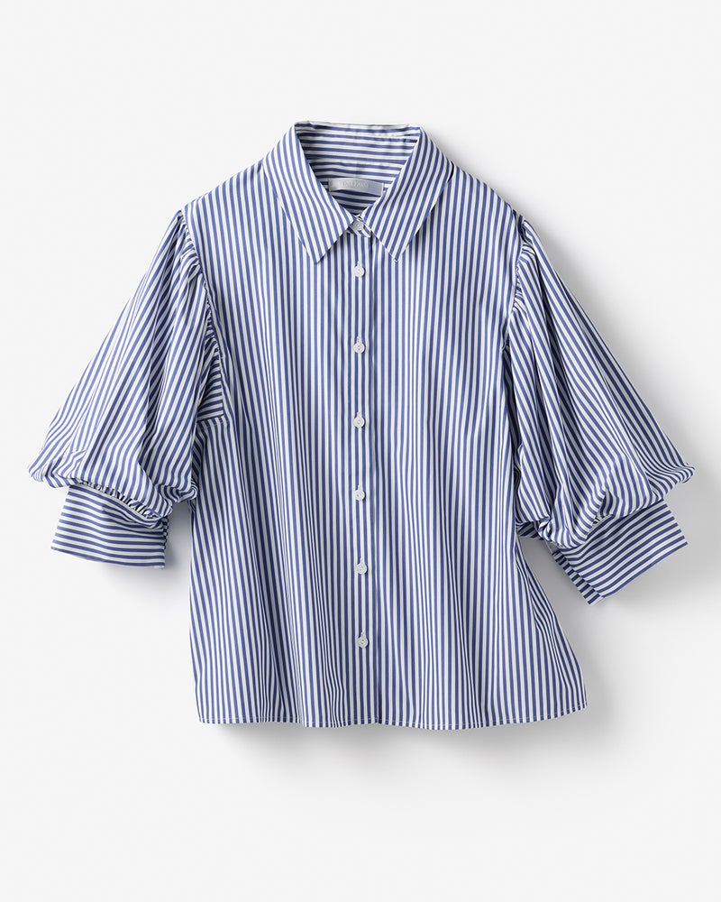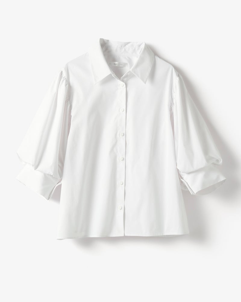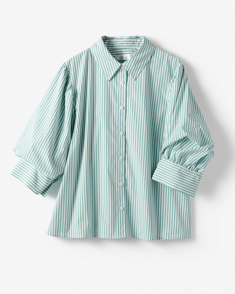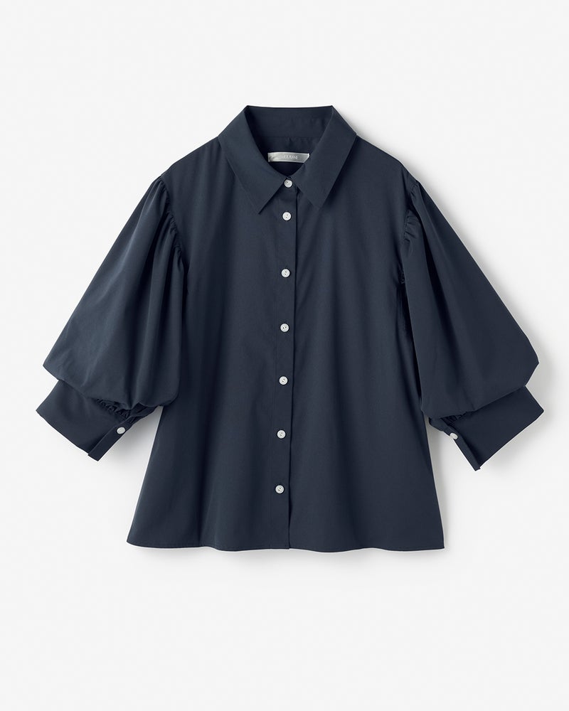ドラマティックなボリューム袖が上半身を華やかに彩るブラウス。ハリのあるコットンライクな上質生地は、立体的なフォルムを綺麗に見せると同時に紫外線95%カット、吸水速乾、イージーケアなどの多彩な機能を備えています。可愛さはもちろん心地よさもうれしい1着です。