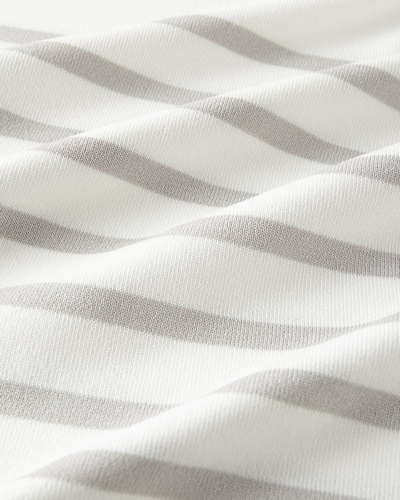 春先にも着られる様に白とグレーのボーダーを購入しました。思ったより丈が短めでしたが、スッキリ着られると思います。