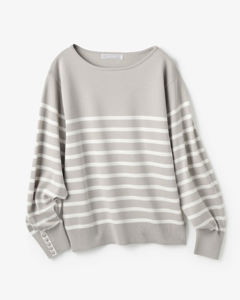 • ストレッチニット・袖ボタンボートネック 詳細画像 グレー×ホワイト 1