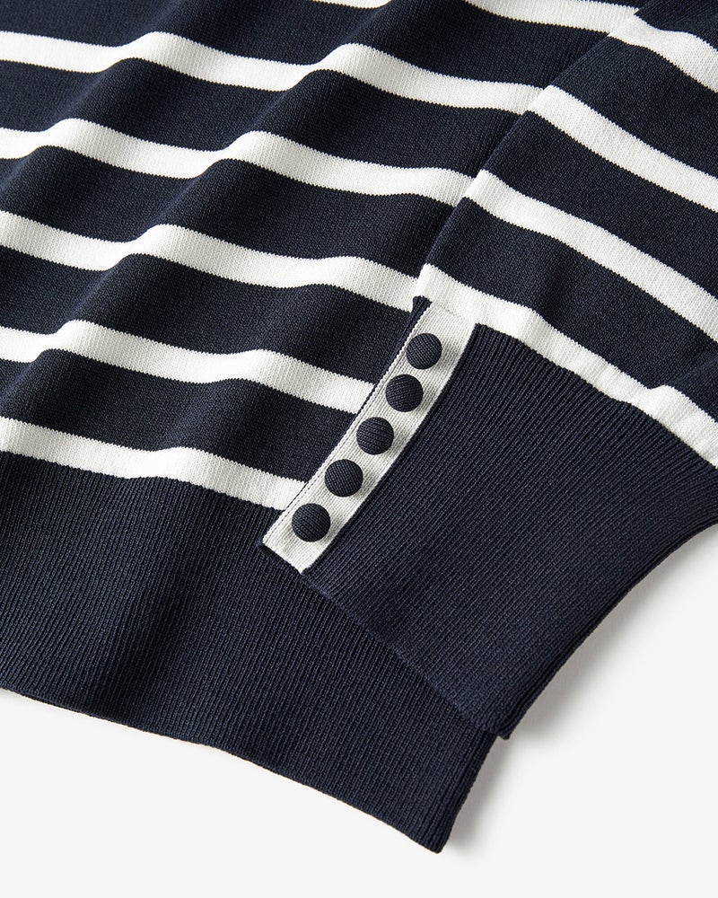 • ストレッチニット・袖ボタンボートネック 詳細画像 ネイビー×ホワイト 2