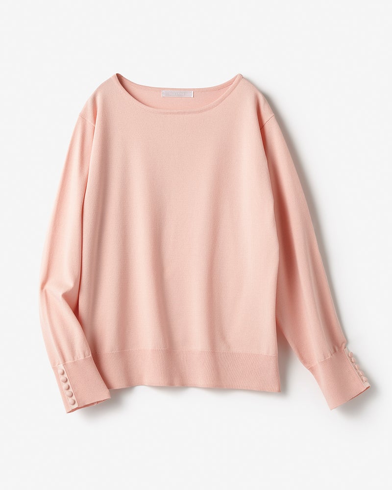 • ストレッチニット・袖ボタンボートネック 詳細画像 ライトピンク 1