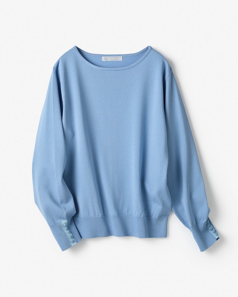 • ストレッチニット・袖ボタンボートネック 詳細画像 ライトブルー 1