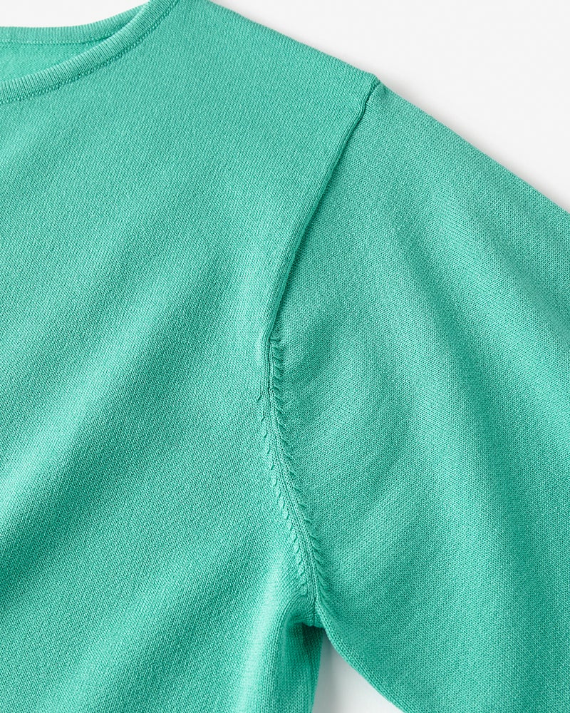 ストレッチ糸を添えて編みたてることで、なめらかな着心地ときれい見えするハリ感を両立したハイゲージニット。重ね着しても着ぶくれず、1枚でももちろん着映える、ロングシーズン活躍してくれる毎日のマストアイテム。長めのリブ袖にくるみボタンをあしらったブラウス風の上品ボートネックは、シンプルだけどほのかに女らしさが漂う大人に似合うデザイン。