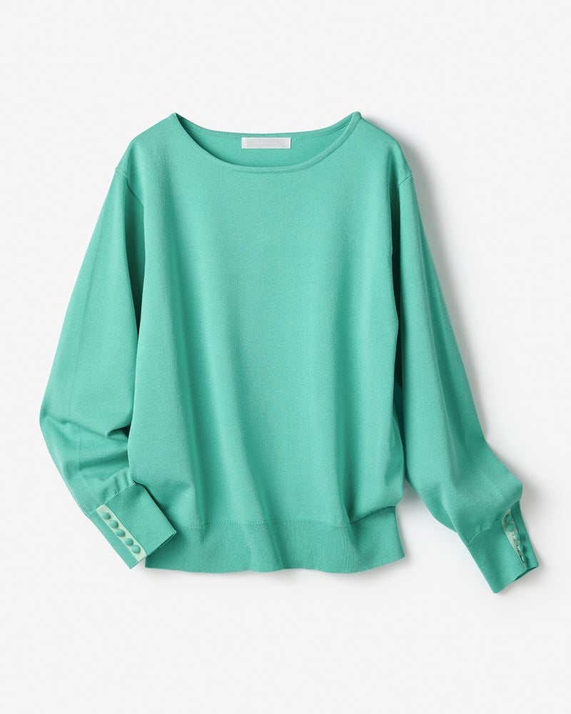 • ストレッチニット・袖ボタンボートネック 詳細画像 ブルーグリーン 1