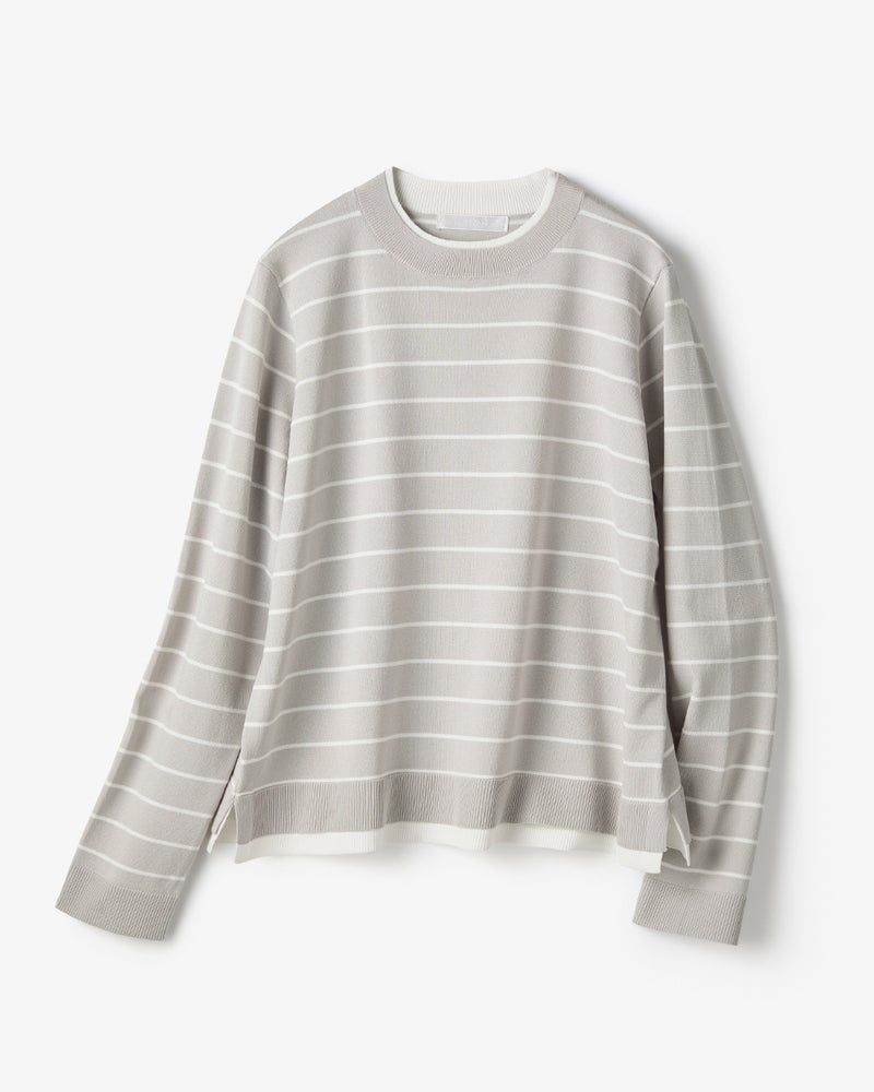 • ストレッチニット・リブ配色クルーネック 詳細画像 グレーパターン 1