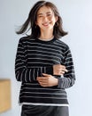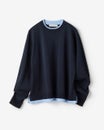 ストレッチニット・リブ配色クルーネック