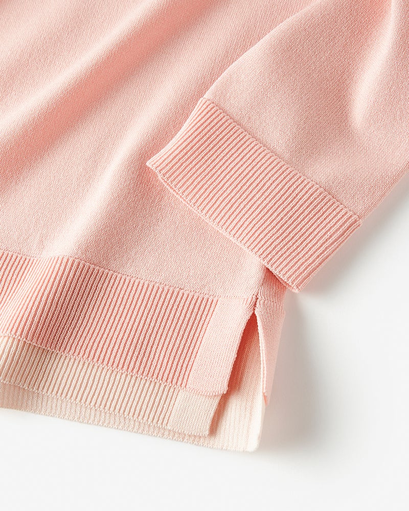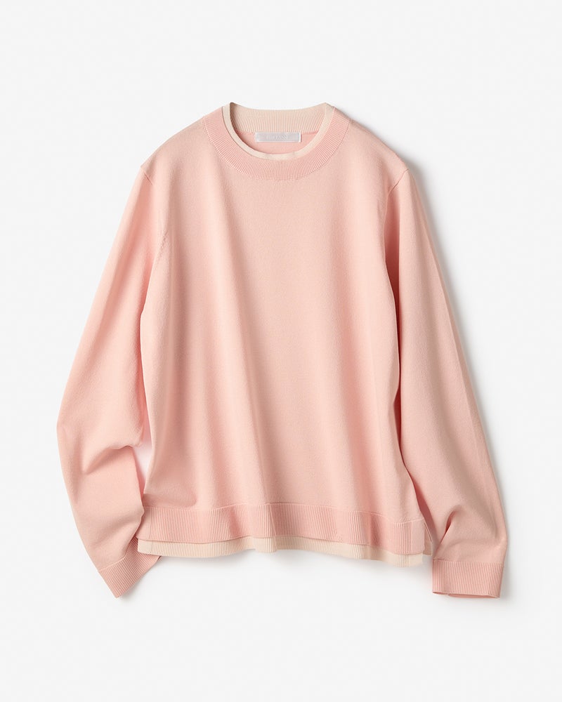 • ストレッチニット・リブ配色クルーネック 詳細画像 ライトピンク 1