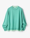 • ストレッチニット・リブ配色クルーネック 詳細画像 ブルーグリーン 1