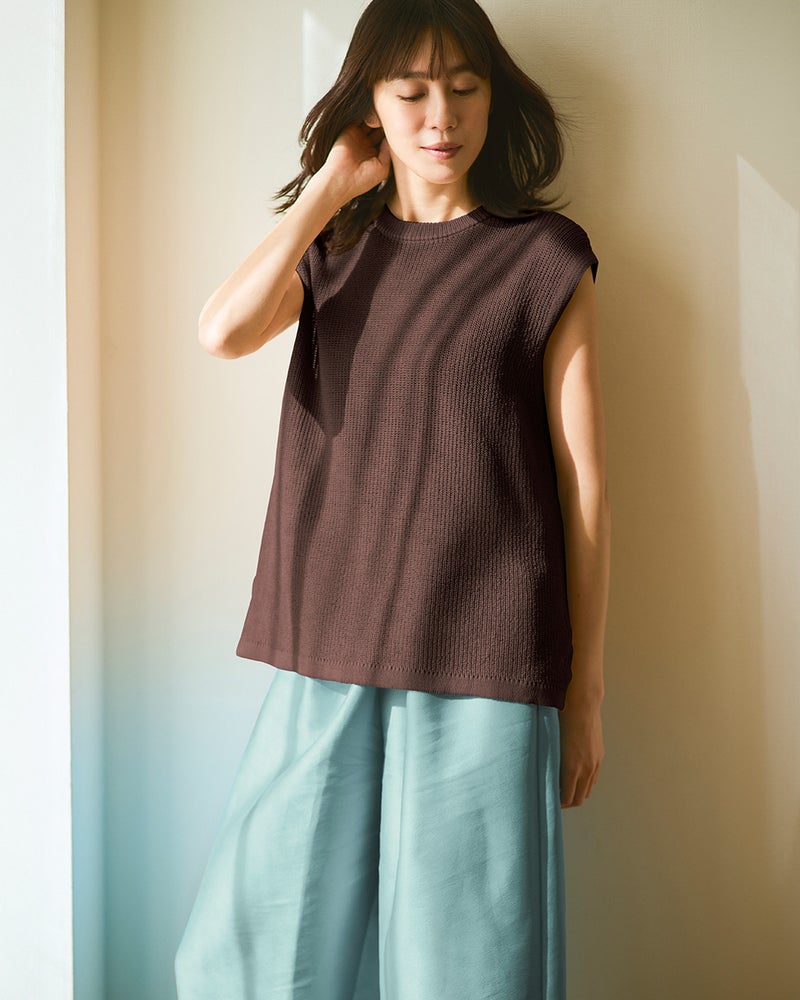• 片畦サマーニット・バックスリットベスト 詳細画像 ブラウン 1