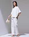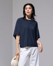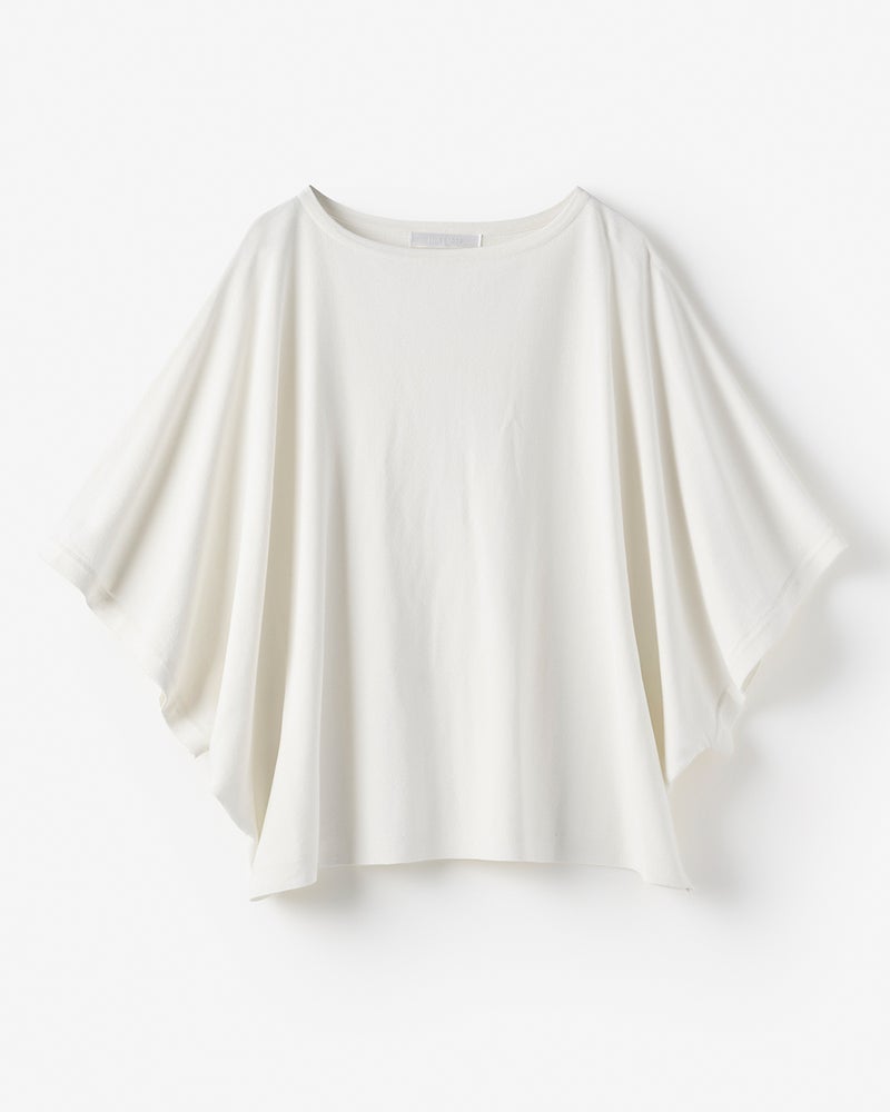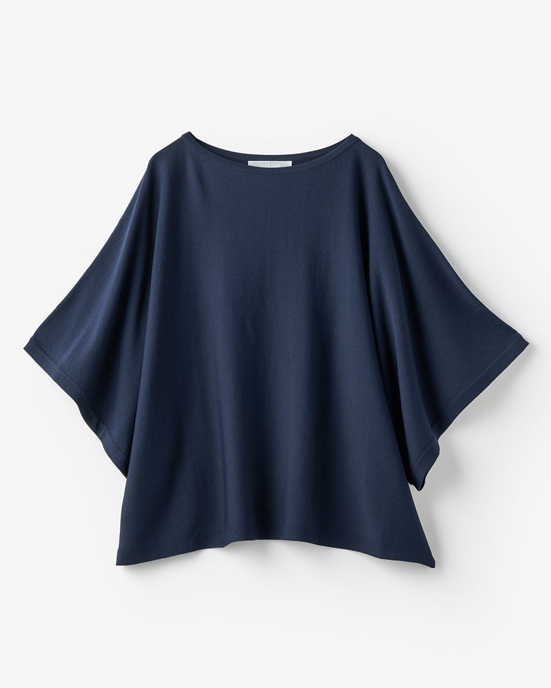 日射しの下でも涼しく過ごせるニットトップス。95%以上の紫外線カット効果をはじめ、ひんやりクールタッチ、抗菌防臭などの機能を備えた素材を採用。爽やかな着心地を実現しています。身頃と袖がひとつながりのボートネックは、身体が中で泳ぐかのようなゆったり感、素材のドレープ感がフェミニンな印象。