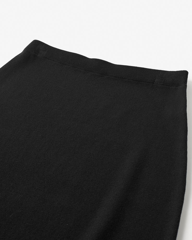 トレンドのシアーディテールをさりげなく取り入れるなら、こんなシアーフリルのニットがおすすめ。ベースは極シンプルなストレートシルエットのニットスカート、裾に透明糸仕立てのシアーフリルをプラスして品よく華やかに。ハリとなめらかさが共存する中厚ニット素材は体のラインも拾わずすっきりと着こなせます。