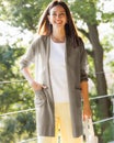 ボタンなしの、シンプルなロングカーディガン。素材はこれからの季節に使えるシアー素材で軽く、気温差の調節。夏の日差し対策にあると便利な1枚です。サイズはゆったり目で、お尻も充分隠れる丈で太ももまであるので、スッキリとしたパンツとも相性が良さそうです。