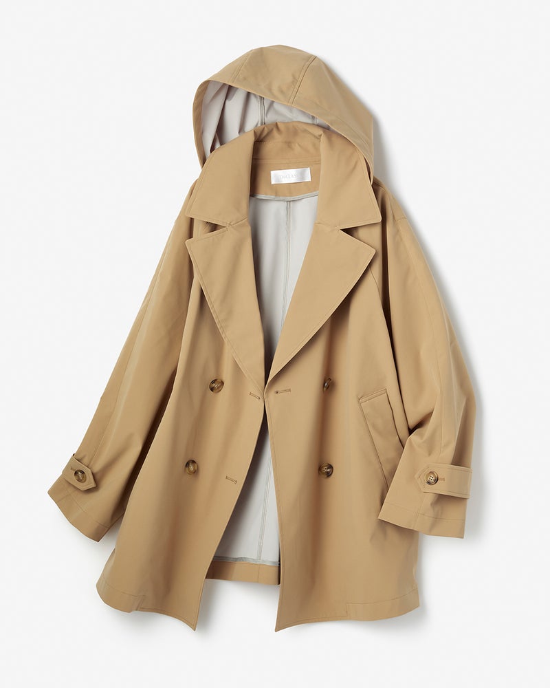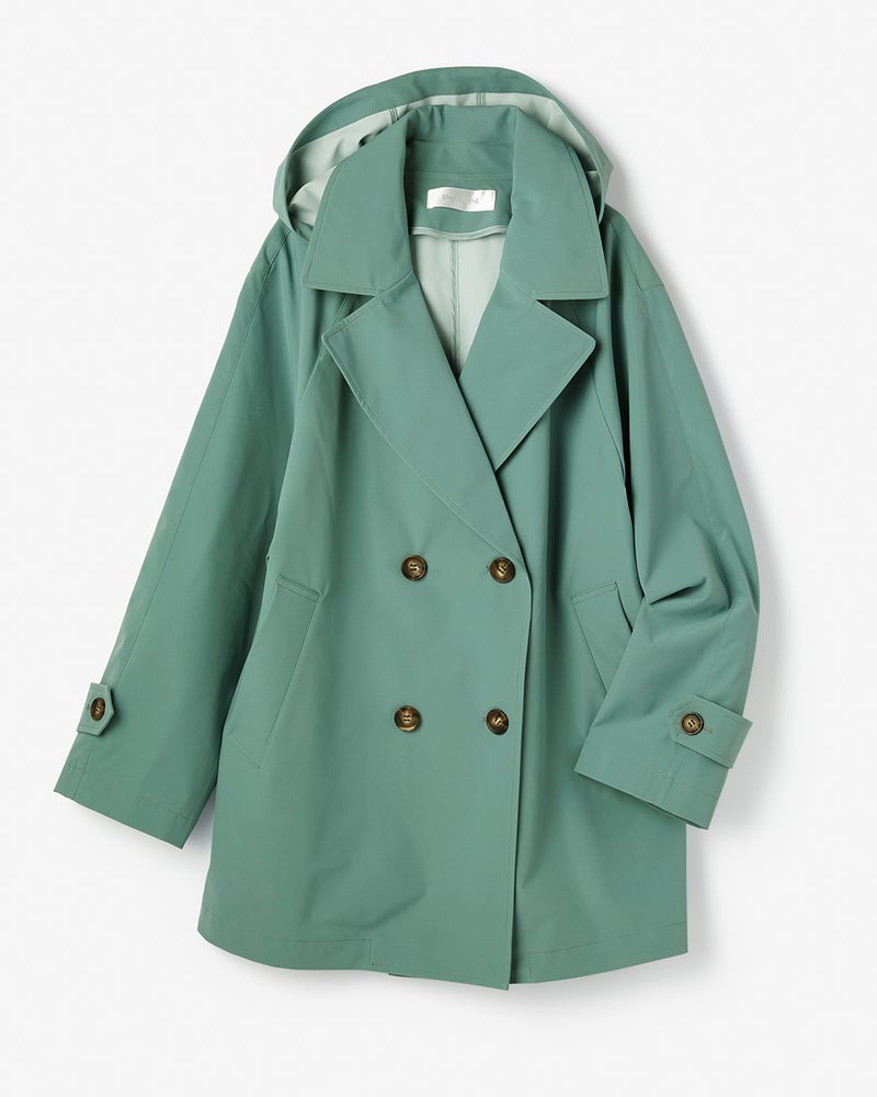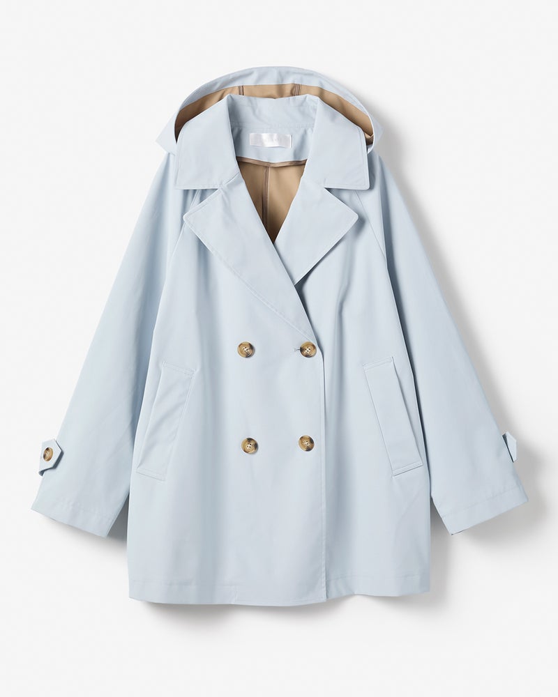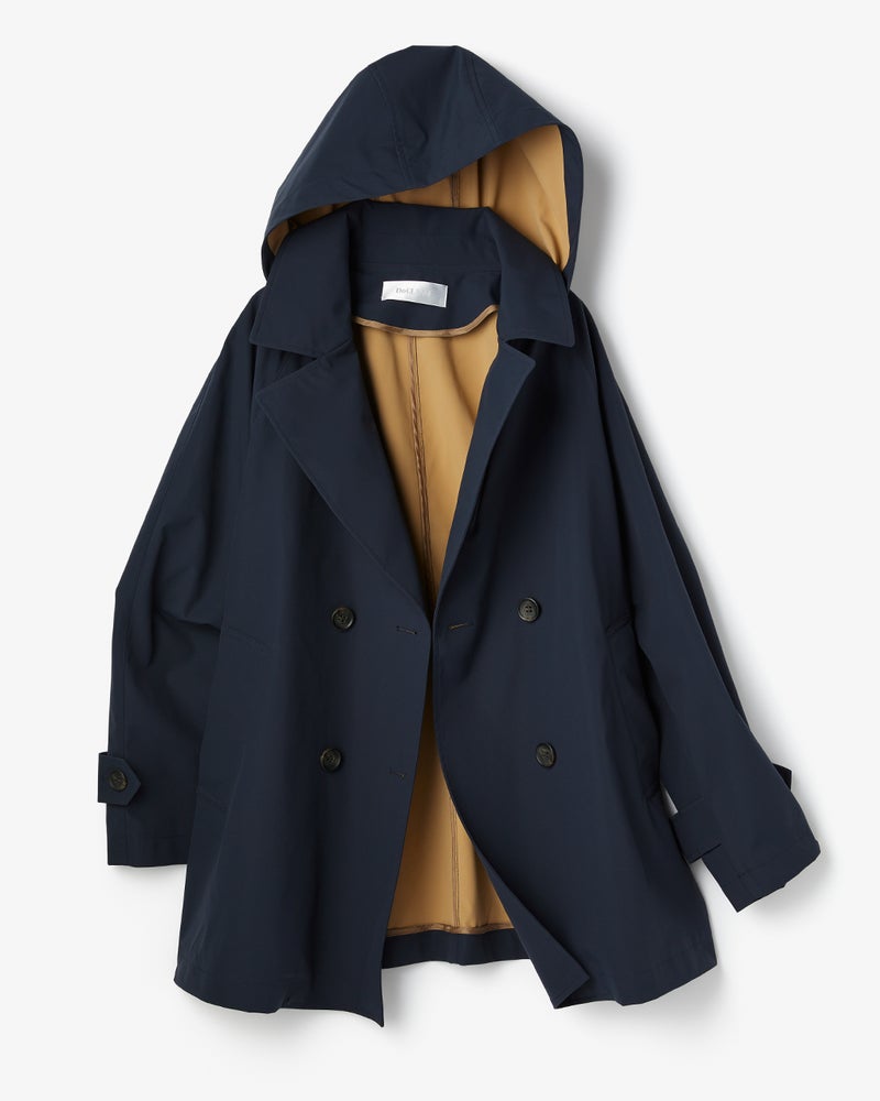 フード付きダブルブレストコート