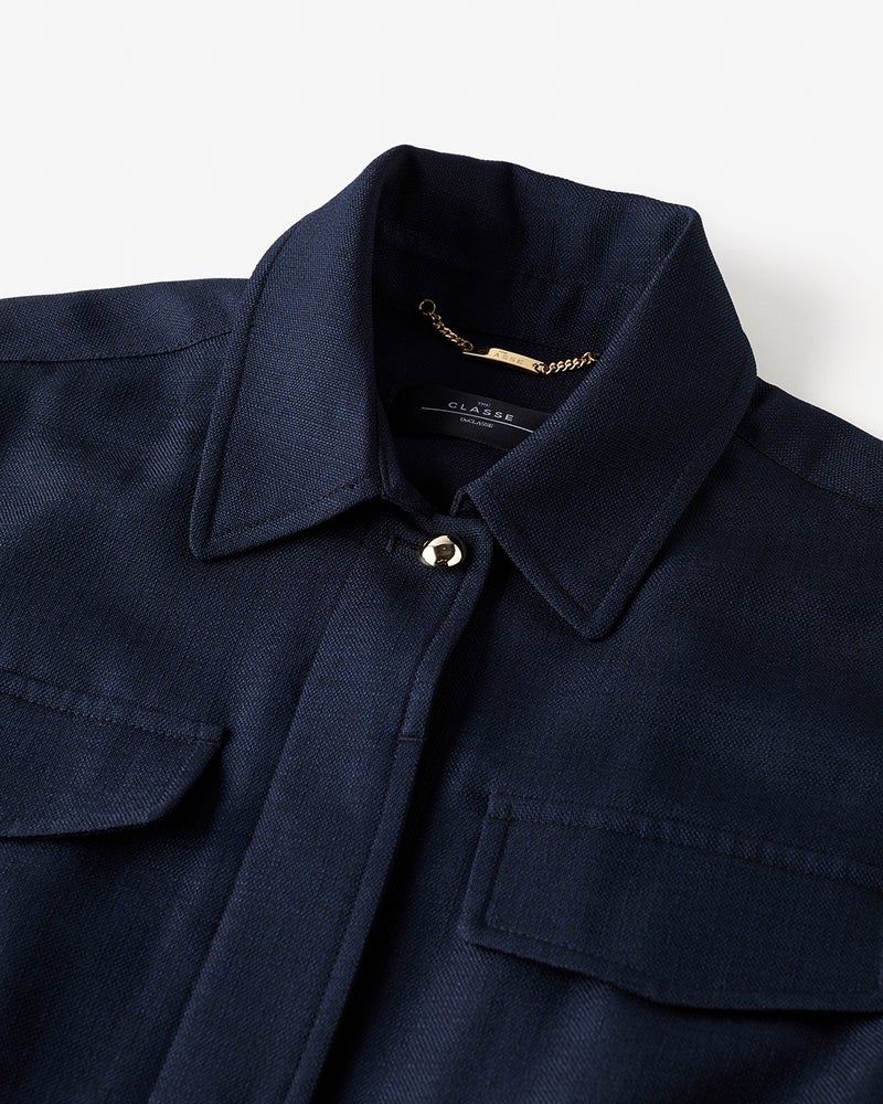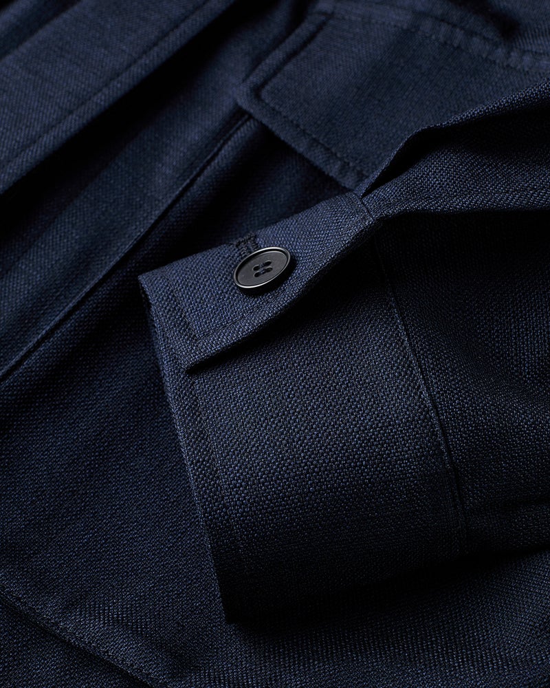 リネンタッチな風合いをシワになりにくい機能性素材で実現したブッチャー織りのロングジャケット。衿つき+ポケット付きのサファリ風デザインは、テーラードとはまた違う辛口なジャケットスタイルが実現。同素材のパンツとのセットアップもおすすめです。
