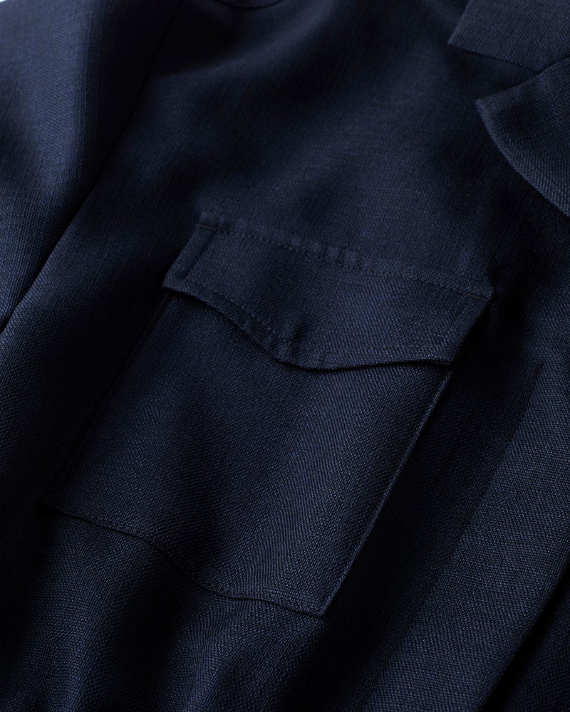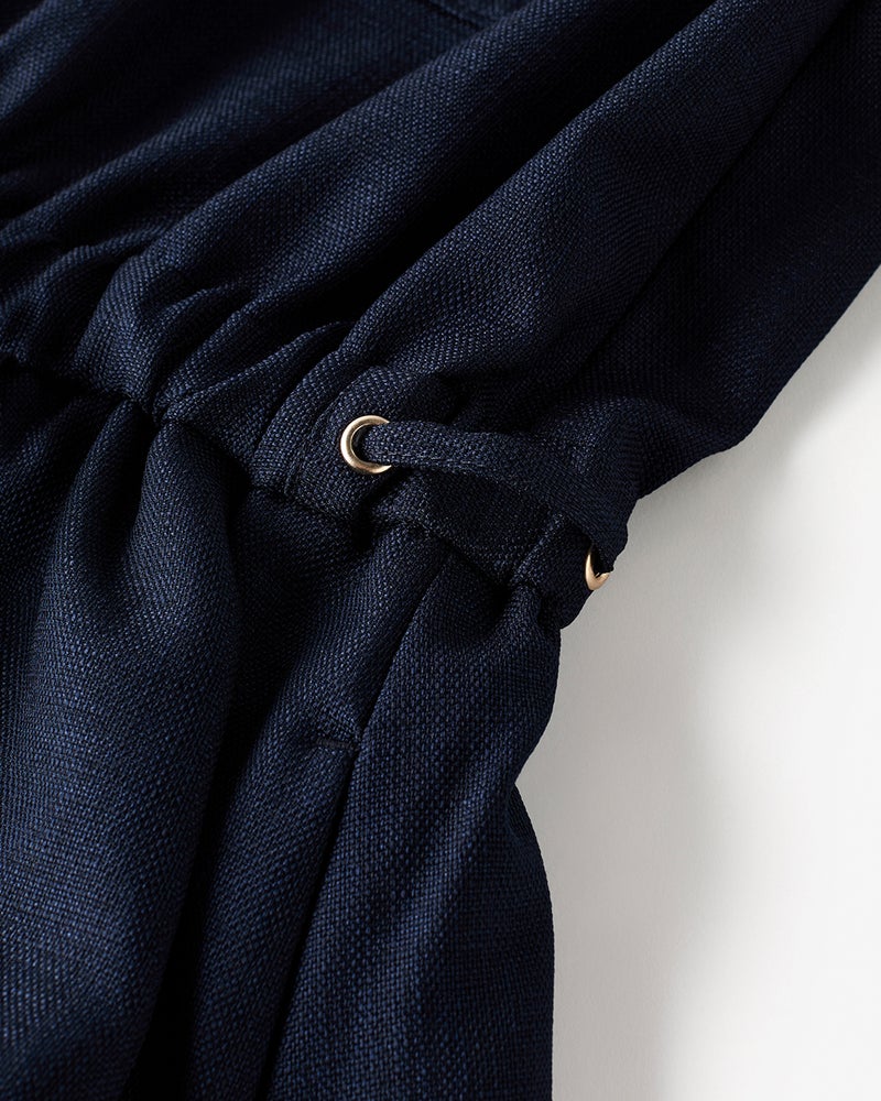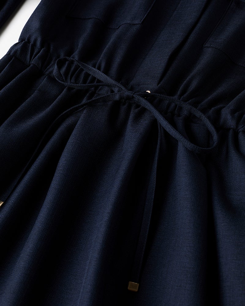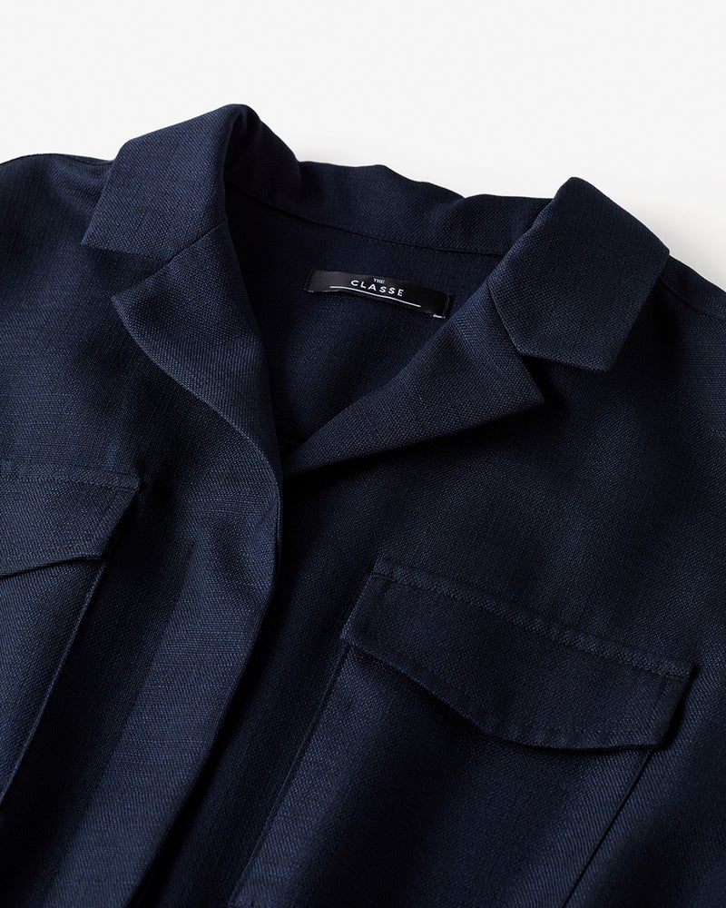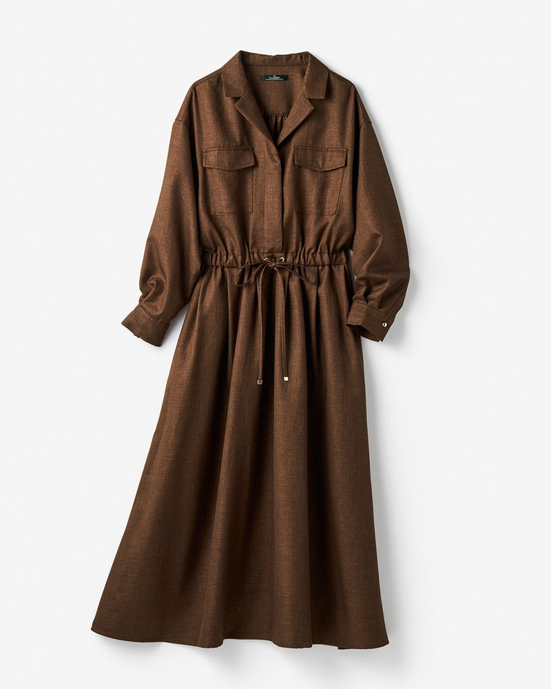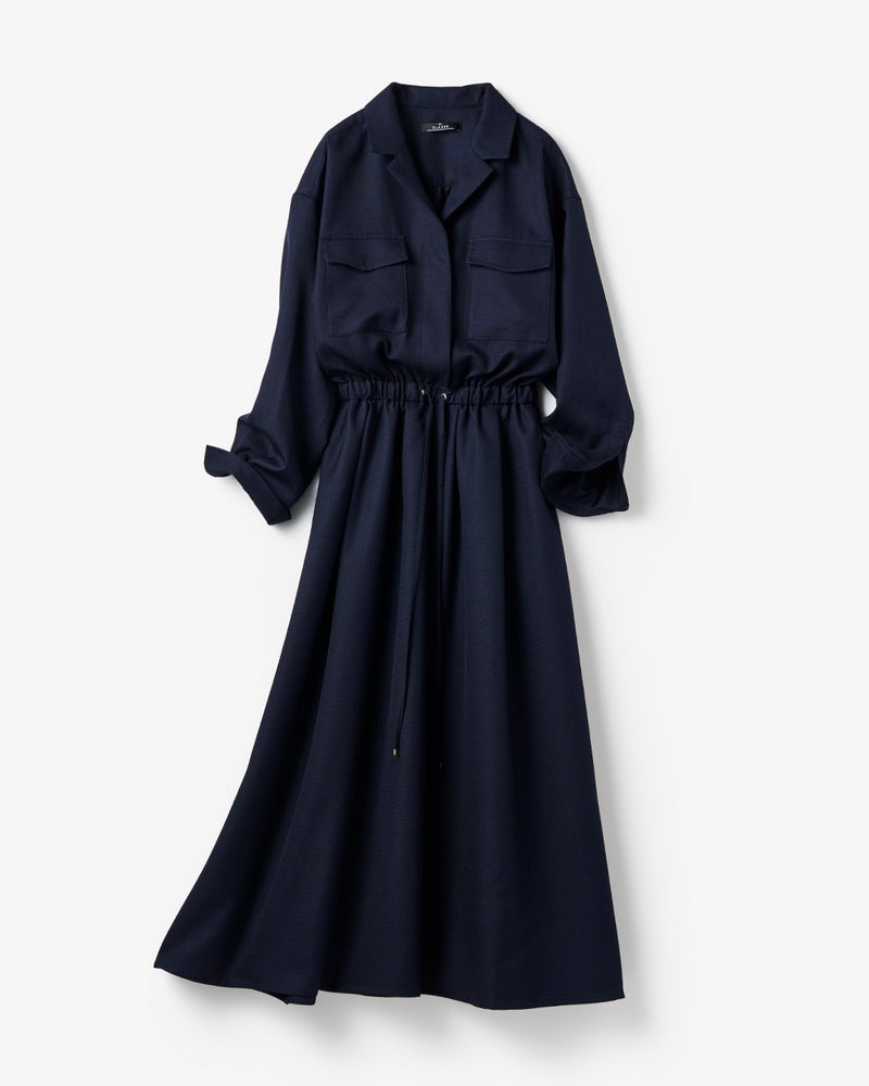 リネンタッチな風合いをシワになりにくい機能性素材で実現したブッチャー織りのロングシャツワンピース。開襟風のデザインや胸ポケットなど、サファリ風のディテールでシャツワンピを辛口に。ウエストは内蔵ゴム入りで、さっと着るだけでメリハリシルエットが実現します。
