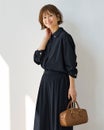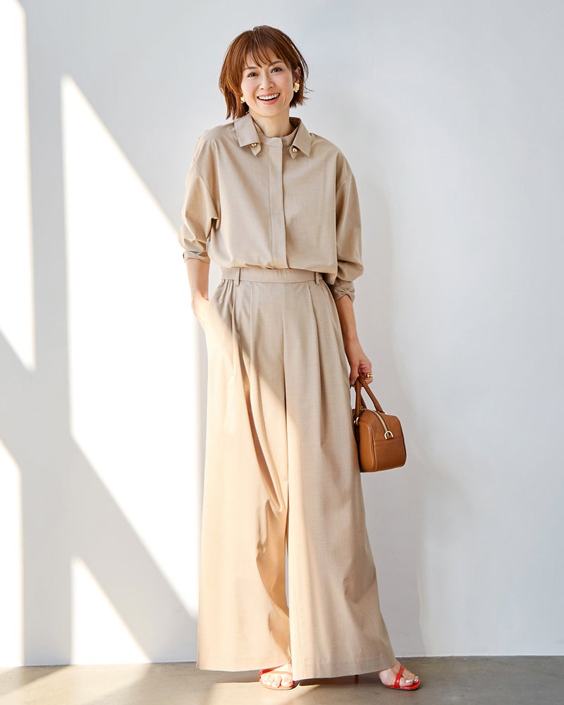サマーウールのようなさらりとした肌心地と、美しい光沢&とろみを両立したストレッチビスコース素材。旬のオーバーサイズも、素材特有の落ち感でスマートに。