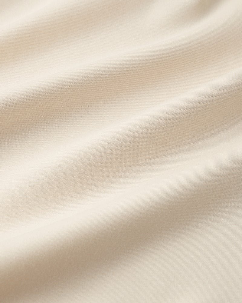 しっとりなめらかな表面感の中肉カットソー素材「シルキーダンボール」で仕立てたプルーバー。スウェットのようにラクな着心地なのに、衿つきだからきれいめにまとまります。人気のポロ衿の中でも、胸元に自然な抜け感をつくるスキッパー衿は小顔効果大。インナーをしのばせても響きにくいので、ロングシーズン活躍します。
