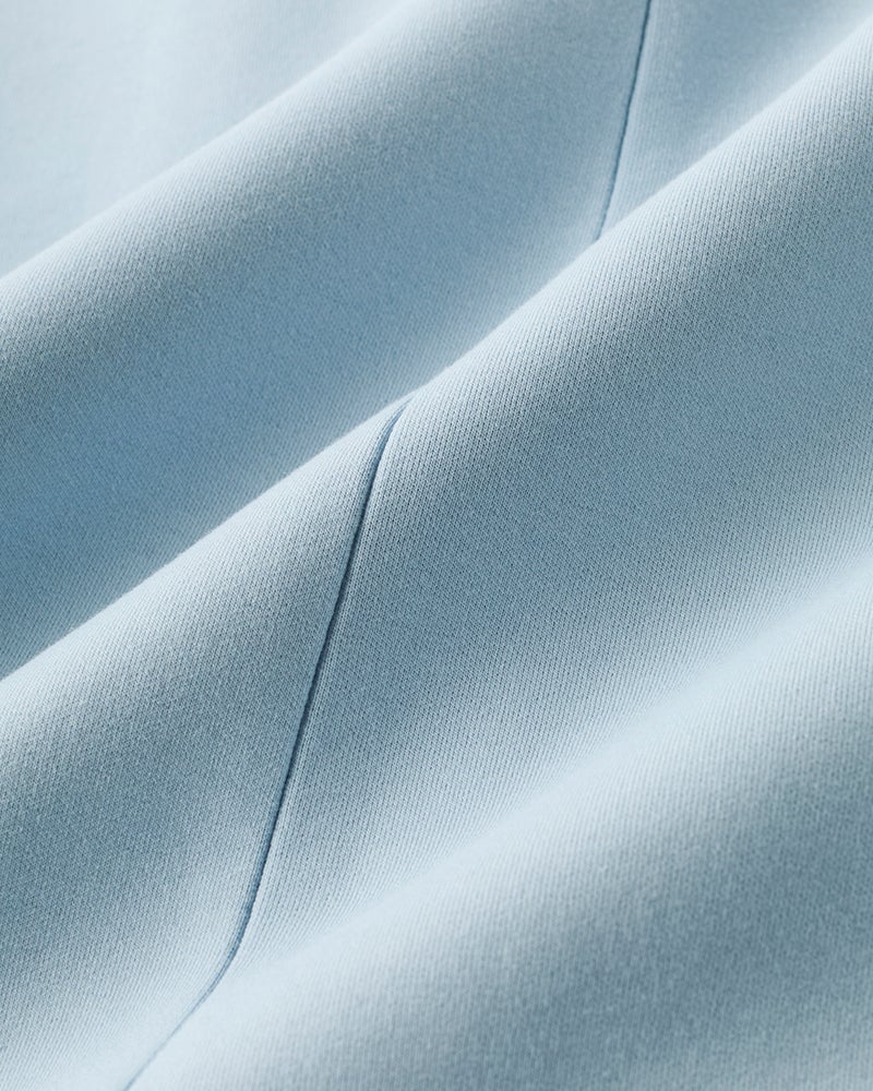 「エアーフォルム」2枚の生地と表と裏で継ぎ合わせた、別名ダンボール素材とも呼ばれるジャージー素材。軽く柔らかな着心地でありながらほどよいハリがあるので、体型を巧みにカバーしながら構築的なフォルムも美しく決まります。