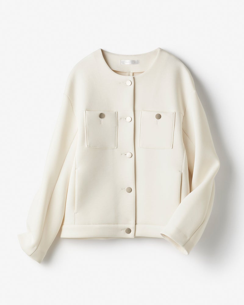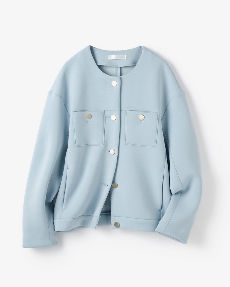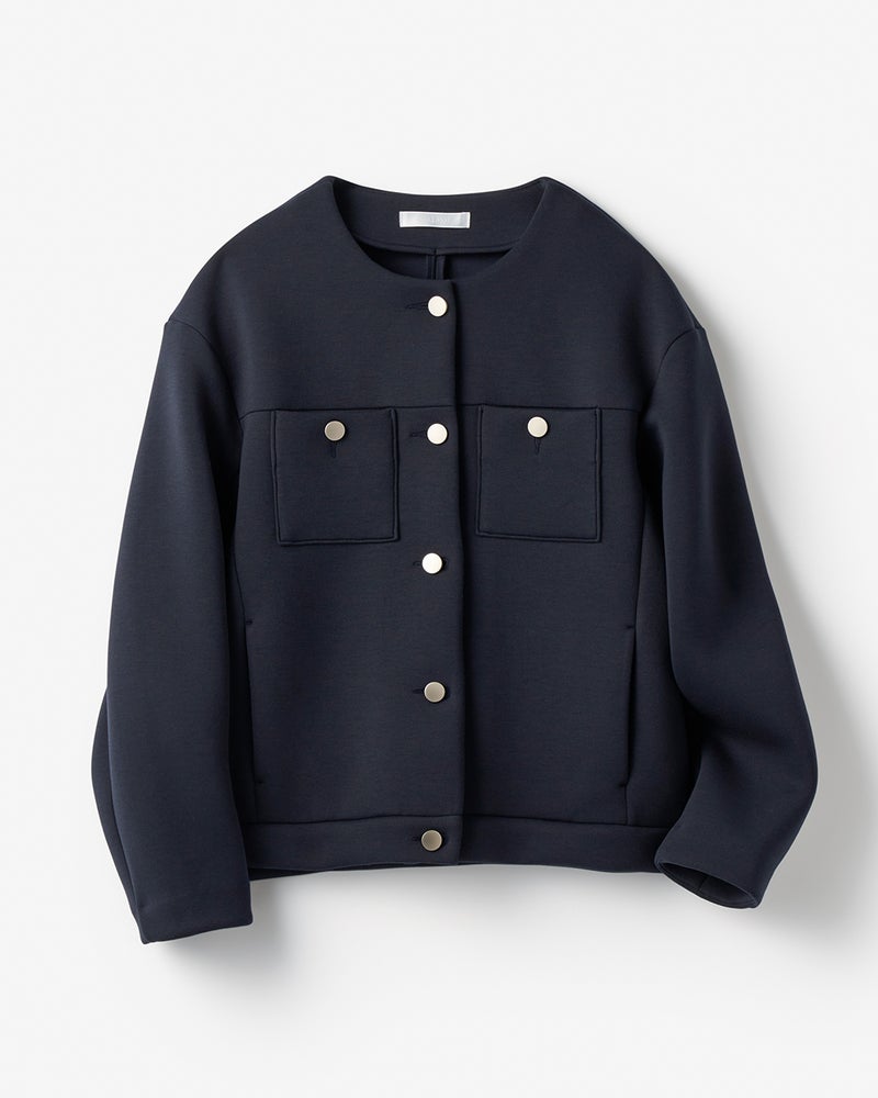 上品な光沢で、きちんと見えしながら堅苦しさのない「エアーフォルム」素材を使用。軽い着心地でありながら、柔らかなハリとふくらみが体型をカバーしながら美しいシルエットをキープします。キラリと光るメタルボタンがアクセのようなポイントに。