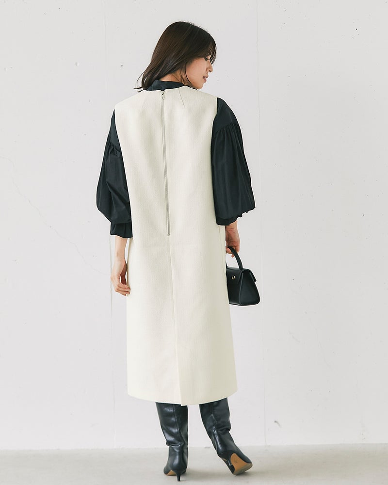 品格と華を両立したツイードの中でも、正統派で汎用性の高い生地をセレクト。大切なセレモニーやお仕事シーンはもちろん、デイリーにも着回していただけるジャンパースカートをおつくりしました。