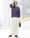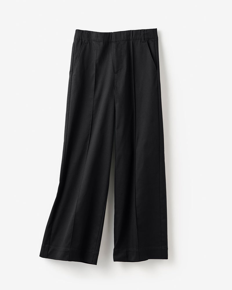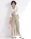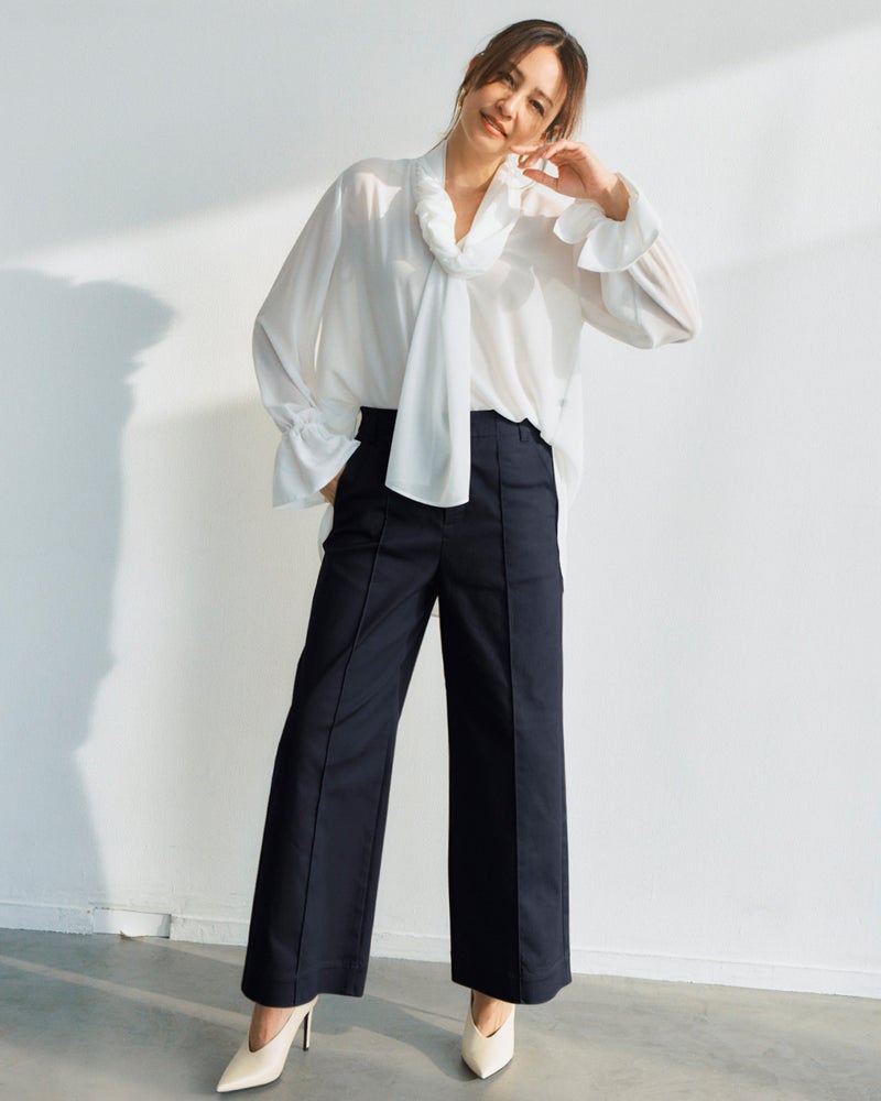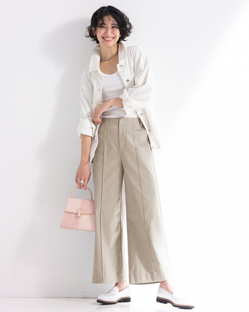 フロントのピンタックとサイド切り替えが縦ラインを強調し、すっきりバランスよく着こなせます。ワイドパンツが似合わないと思っている方にこそ、おすすめしたい1本です。