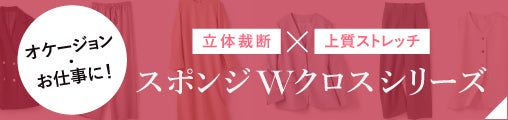 - 多忙な毎日だからこそ、シーンを問わずキレイでいたい。そんな大人の女性に贈るのが、オケージョンからお仕事、日常のお洒落スタイルまで頼りになる「スポンジWクロス」のセットアップシリーズ。ふっくらなめらかな上質感と自然な伸縮性を兼ね備えた極上素材が、大人の毎日を応援します。