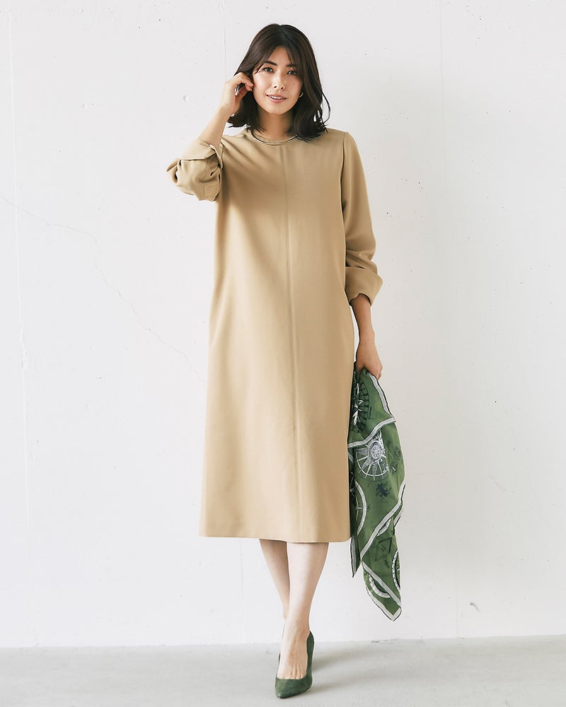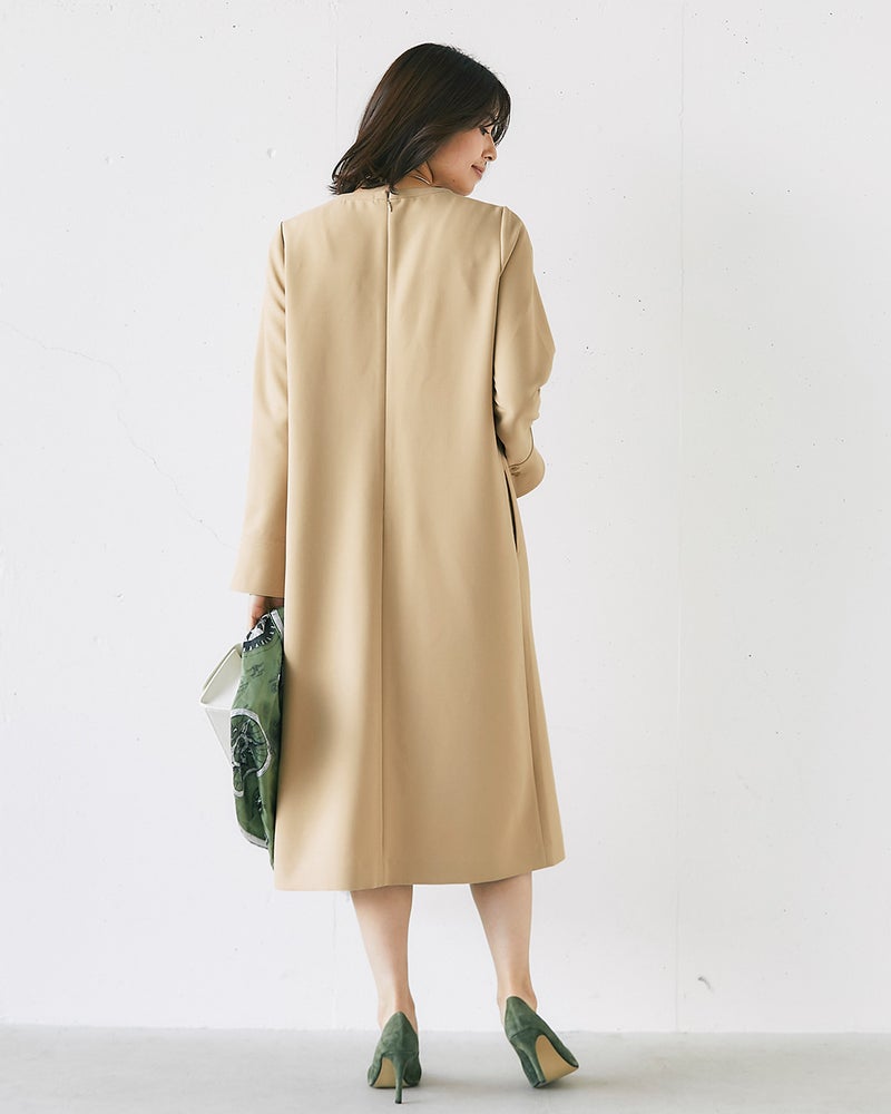 普段のサイズ:9号 着用サイズ:9号 - サラッと軽く着心地の良いシンプルなワンピースです。程よいAラインのデザインが体型をスッキリと見せてくれ、ジャケットと合せるとこれからのシーズンのオケージョンにも着れそうです。