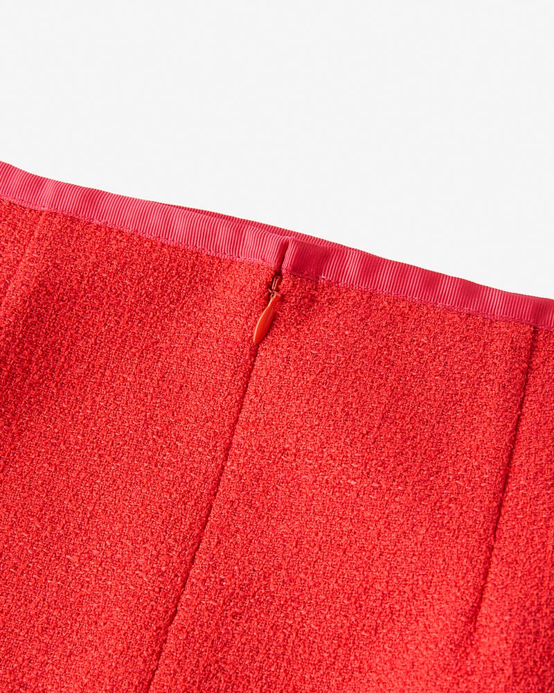 品格と華を両立したツイードの中でも、正統派で汎用性の高い生地をセレクト。大切なセレモニーやお仕事シーンはもちろん、デイリーにも着回していただける華のあるスカートをおつくりしました。