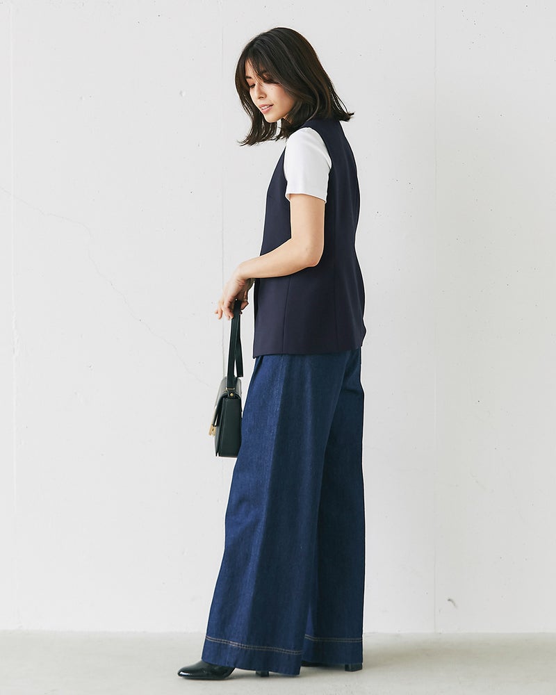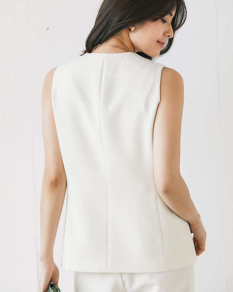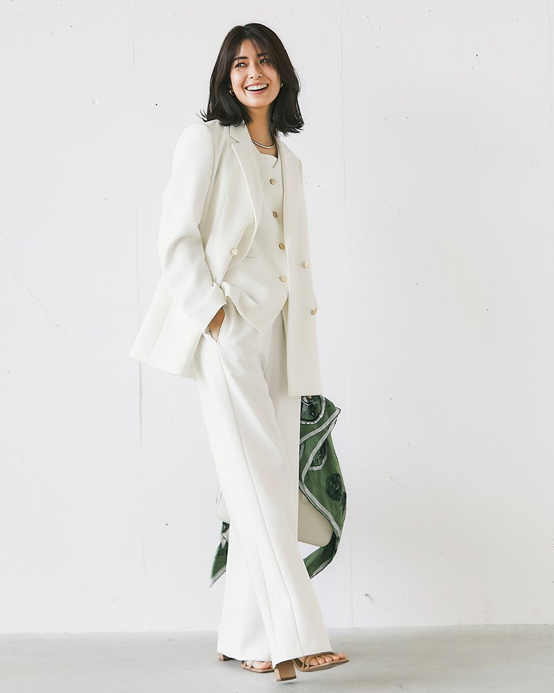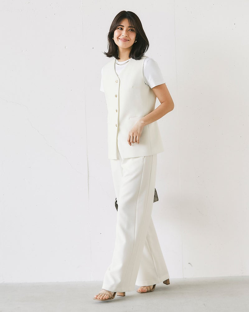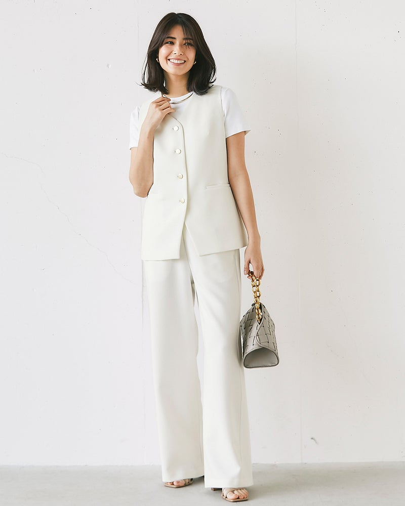 きちんとスタイルを新鮮に見せるなら、コンパクトなデザインのジレがおすすめ。シャツの上からも、1枚でジャケットのインにも、旬の着回し力も魅力です。 - 華やかさも、上質感も。